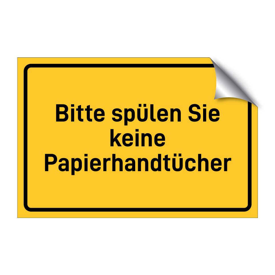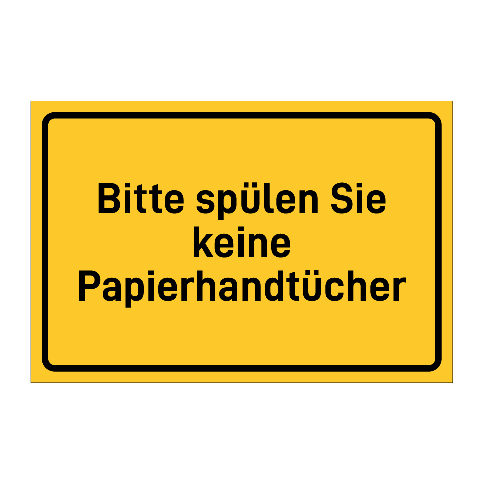 Hinweisschild mit dem Text Bitte spülen Sie keine Papierhandtücher