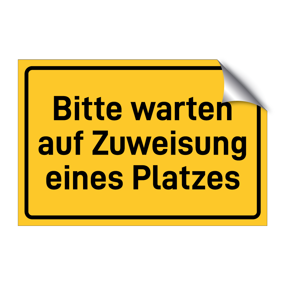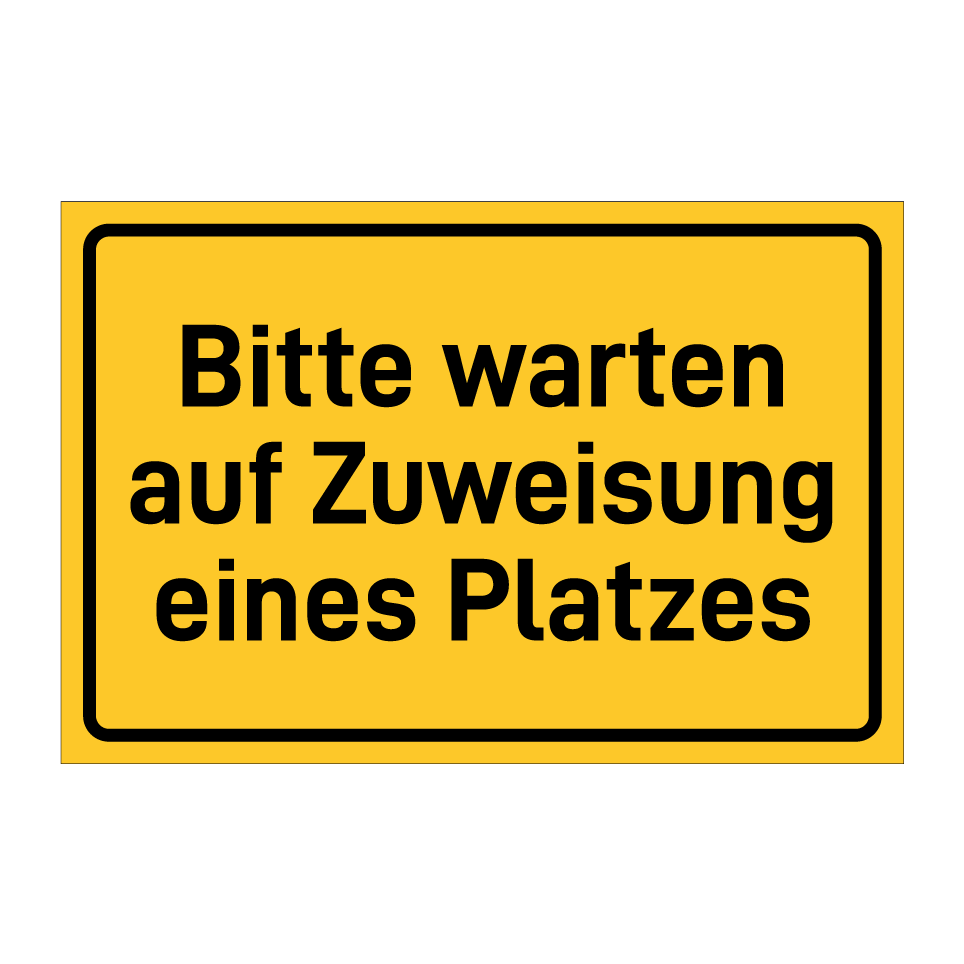 Hinweisschild mit dem Text Bitte warten auf Zuweisung eines Platzes