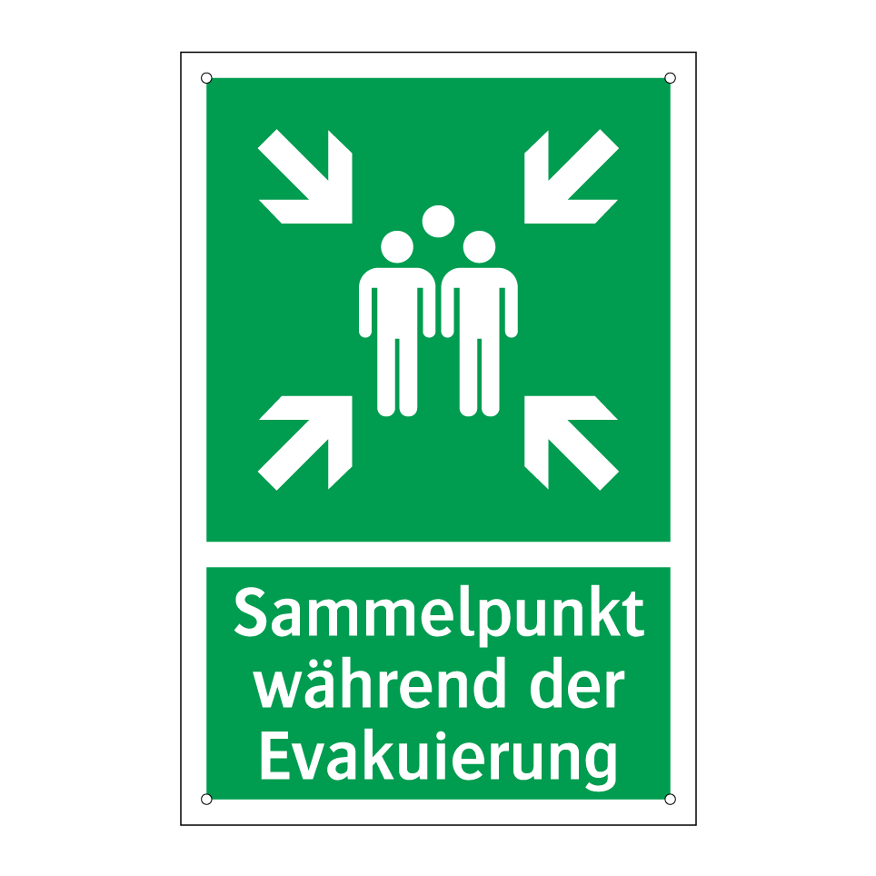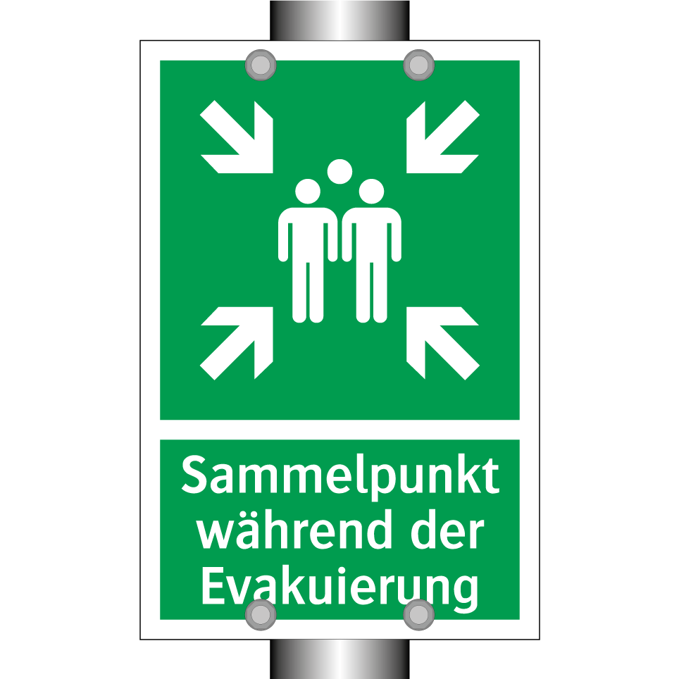 Rettungsschild mit dem Text Sammelpunkt während der Evakuierung