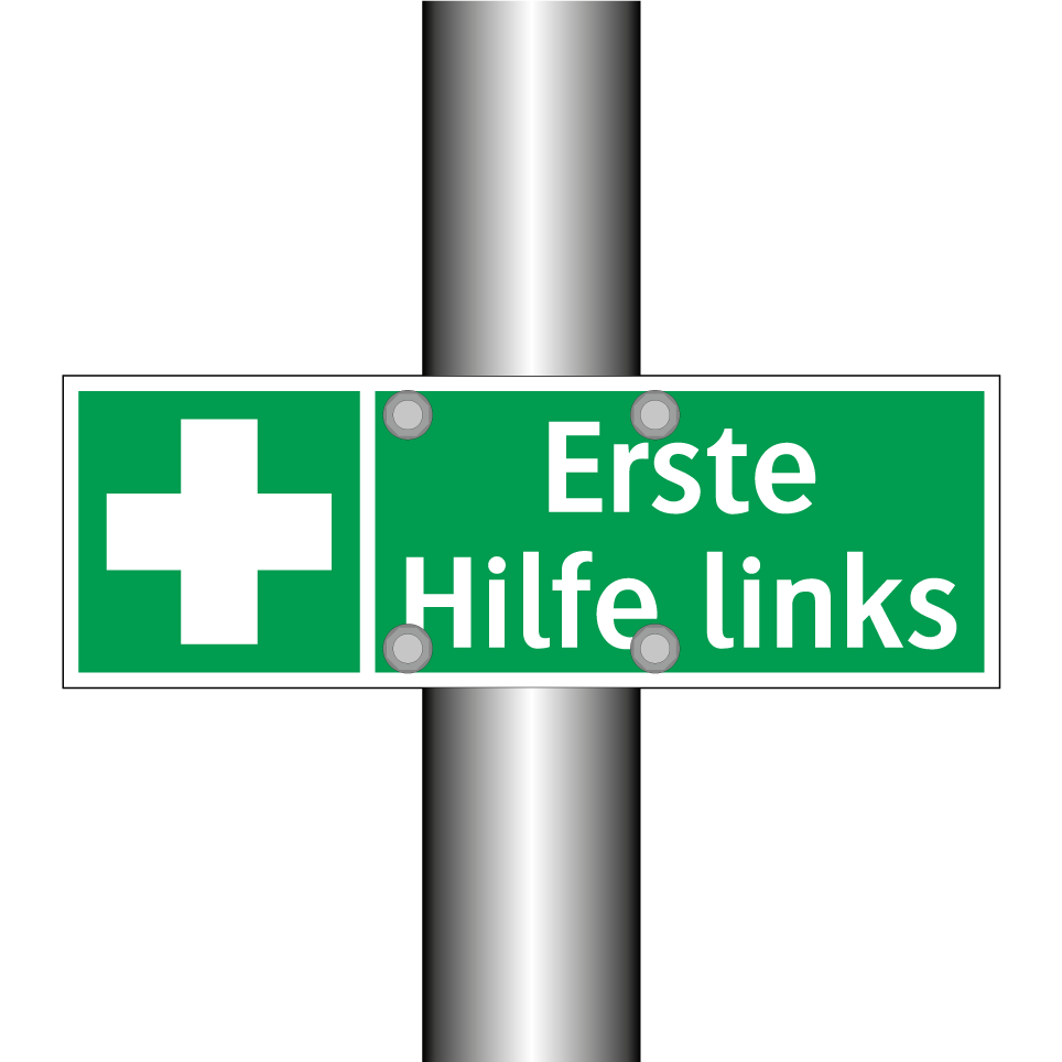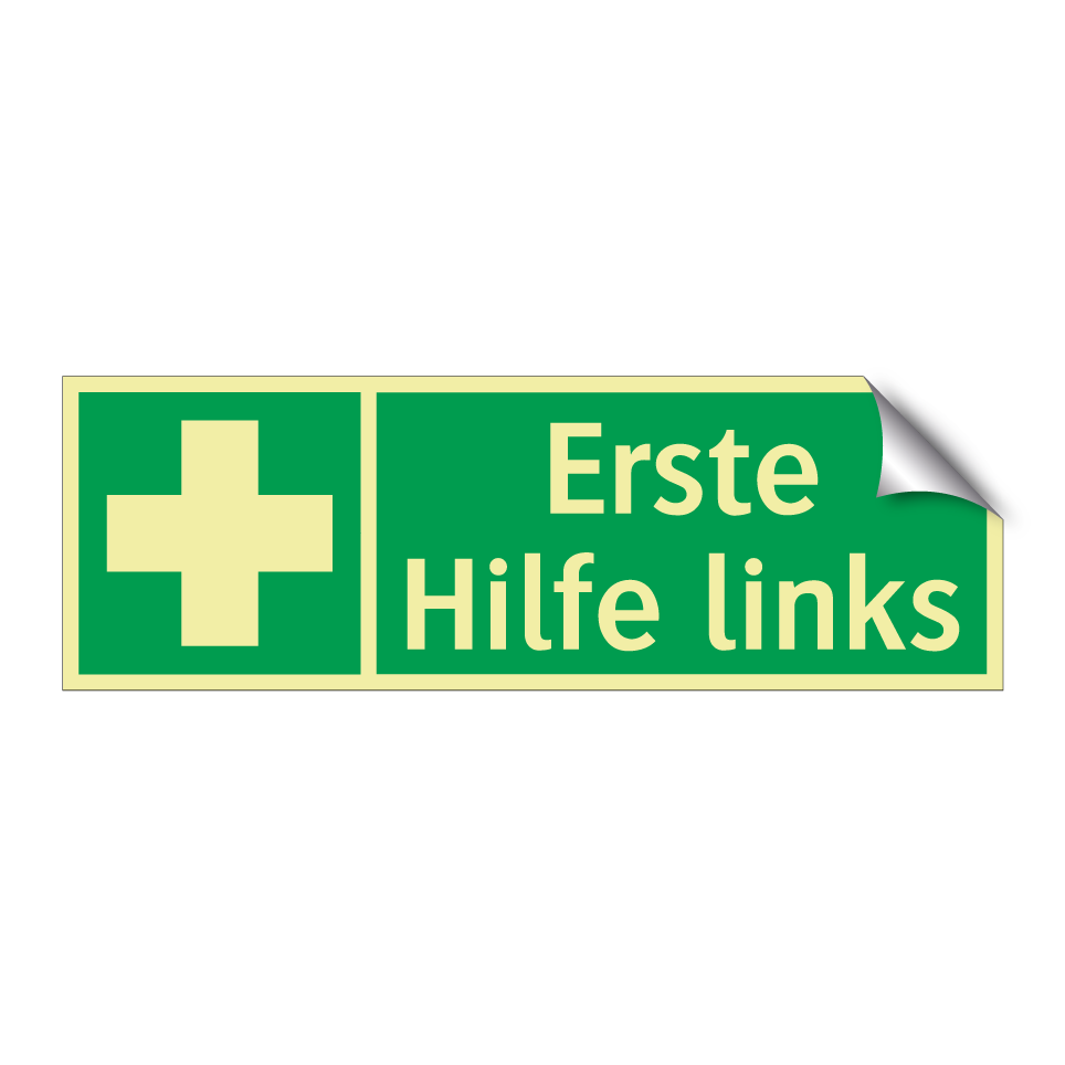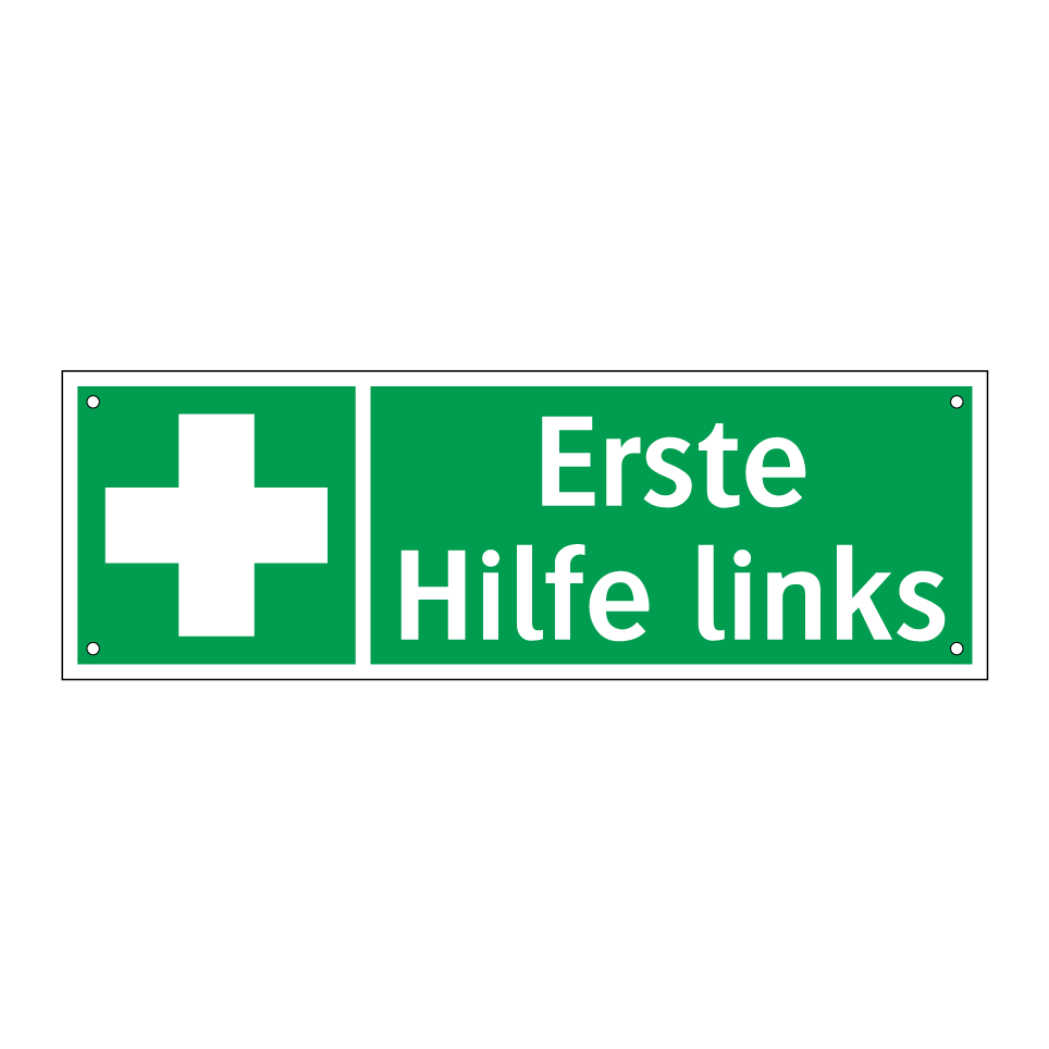 Rettungsschild mit dem Text Erste Hilfe links