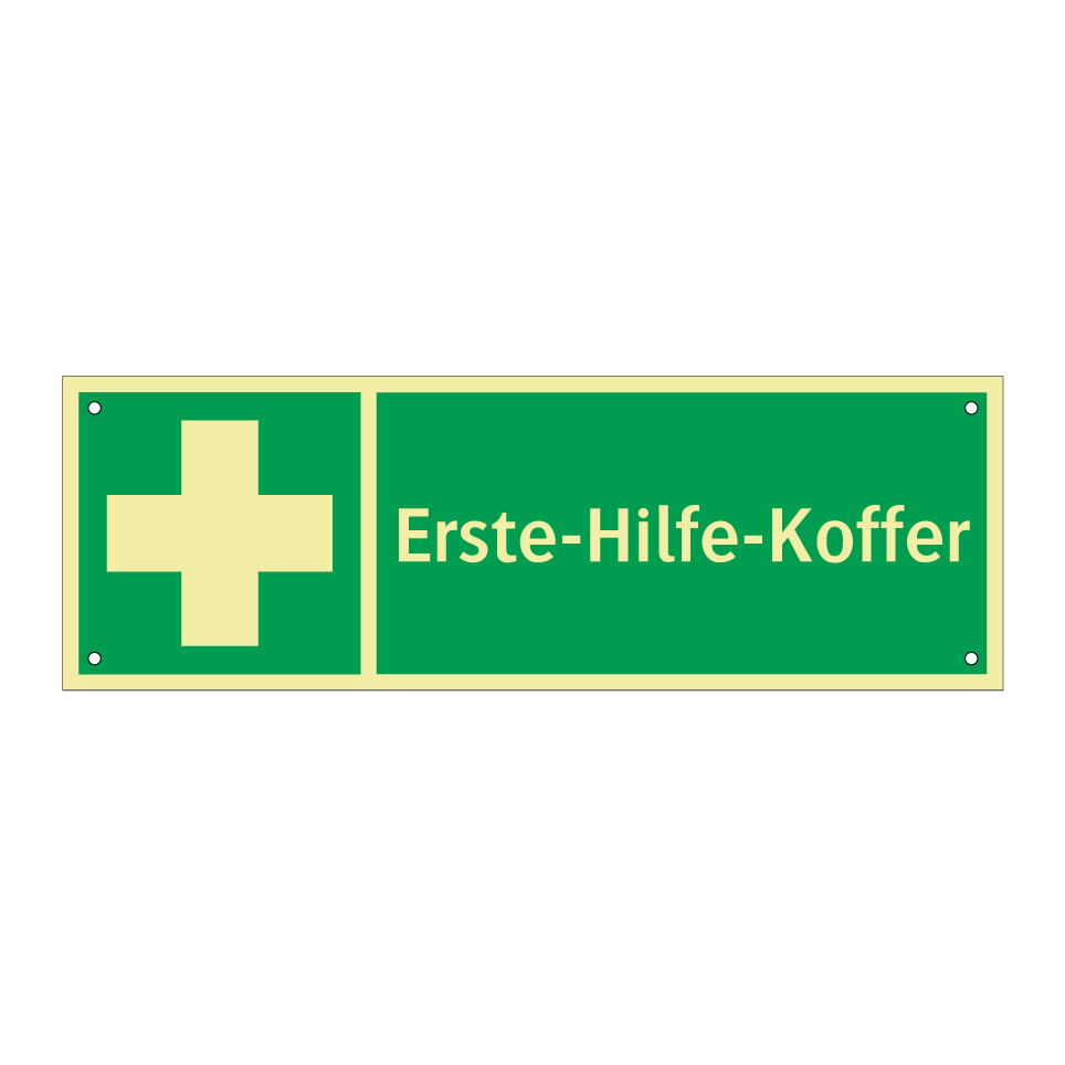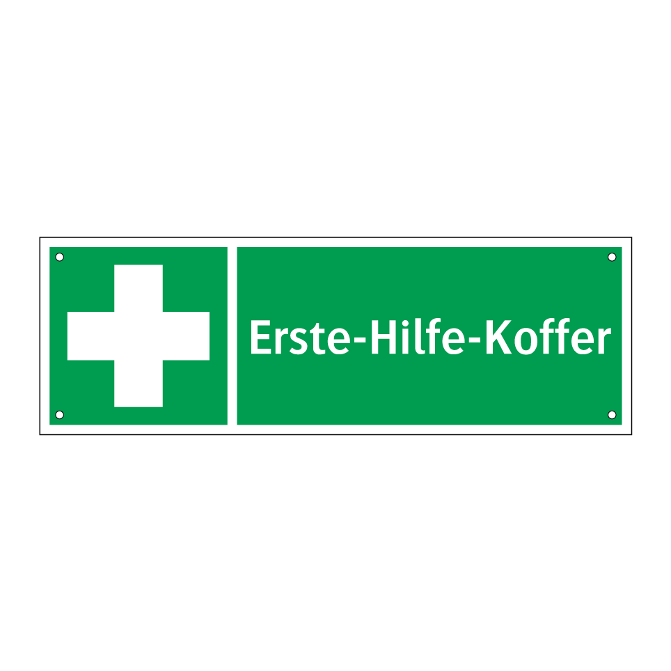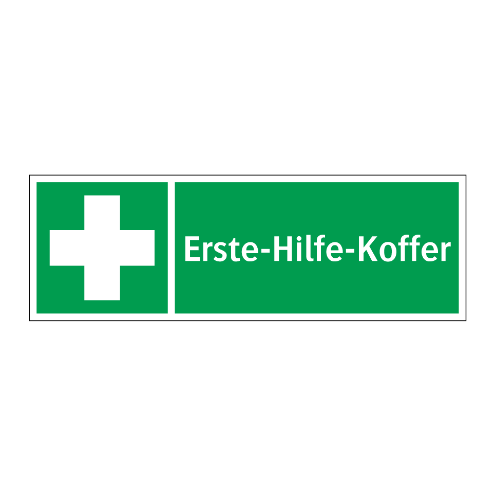 Rettungsschild mit dem Text Erste-Hilfe-Koffer