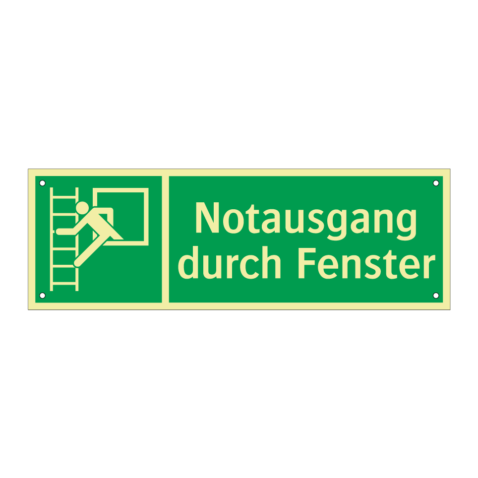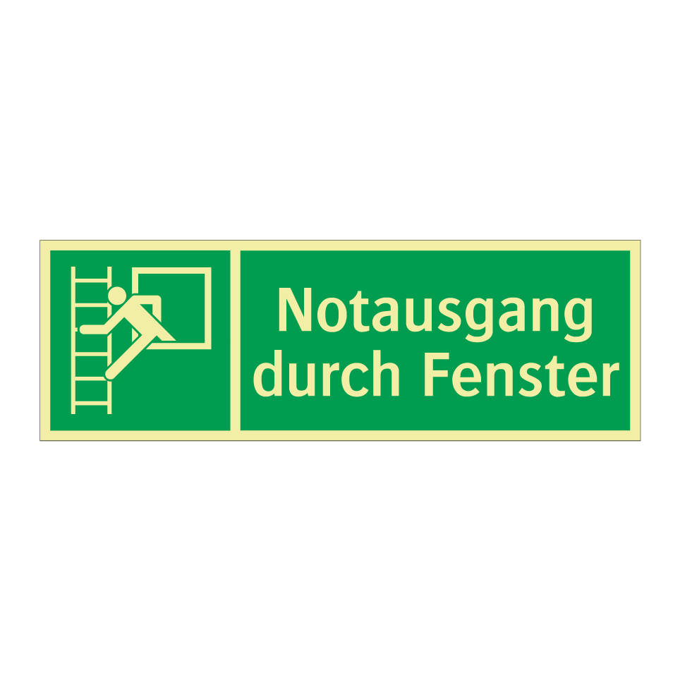 Rettungsschild mit dem Text Notausgang durch Fenster