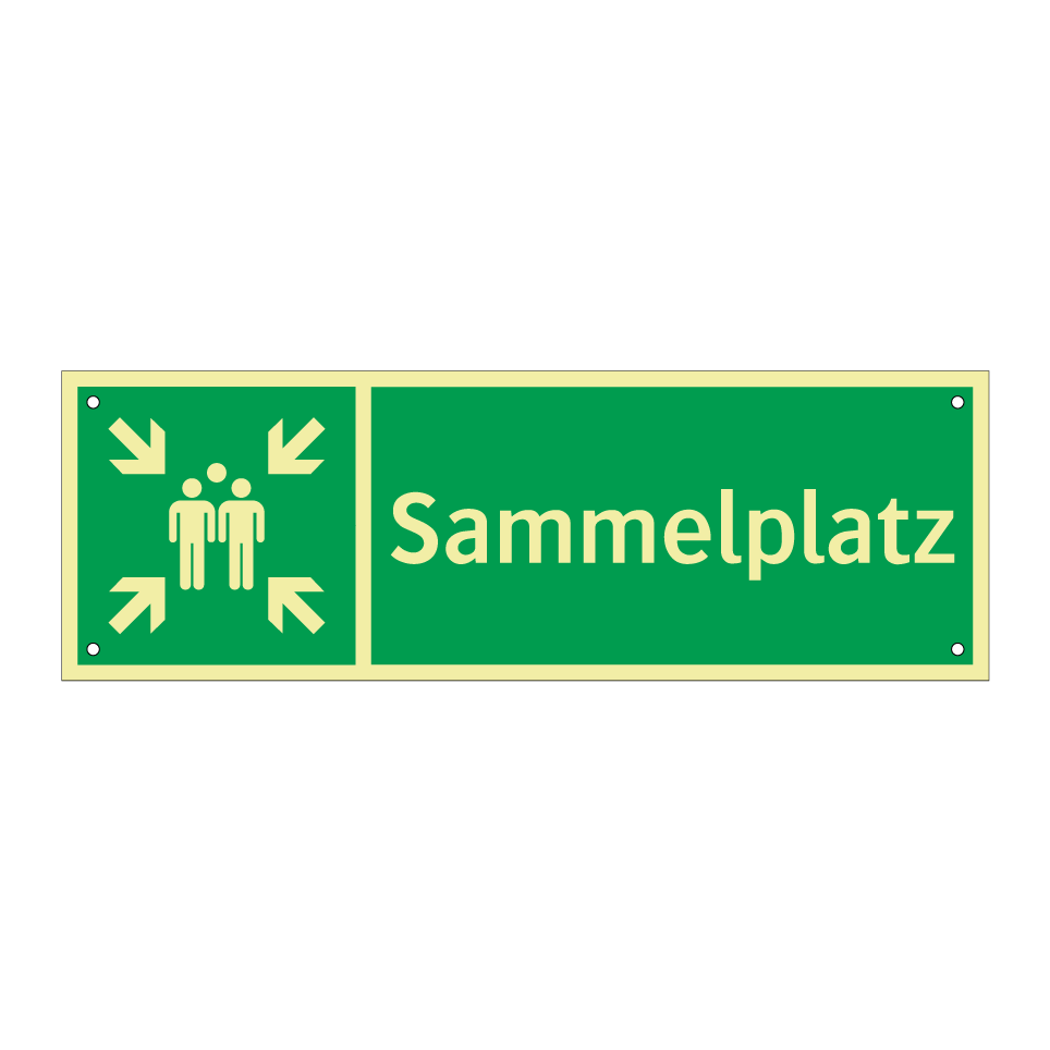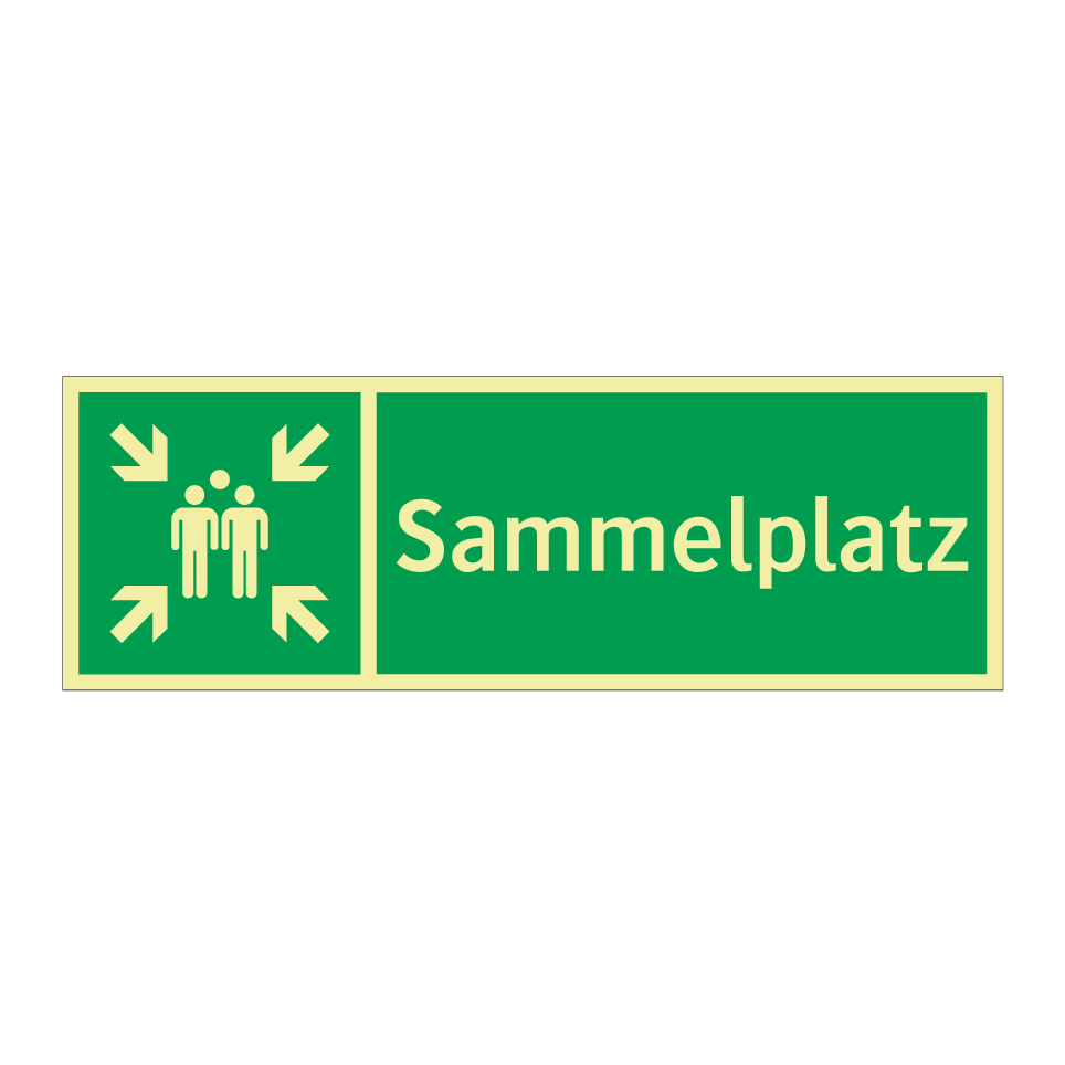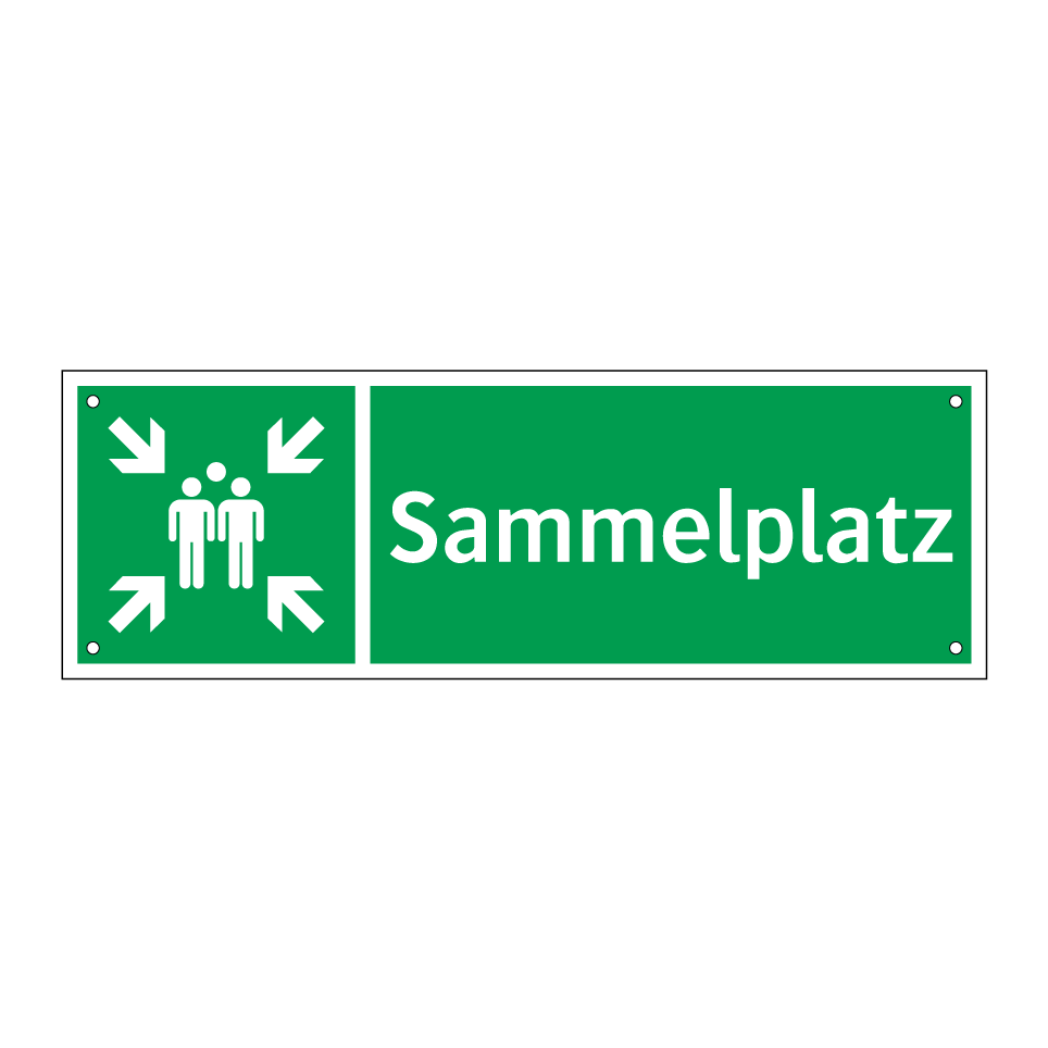 Rettungsschild mit dem Text Sammelplatz