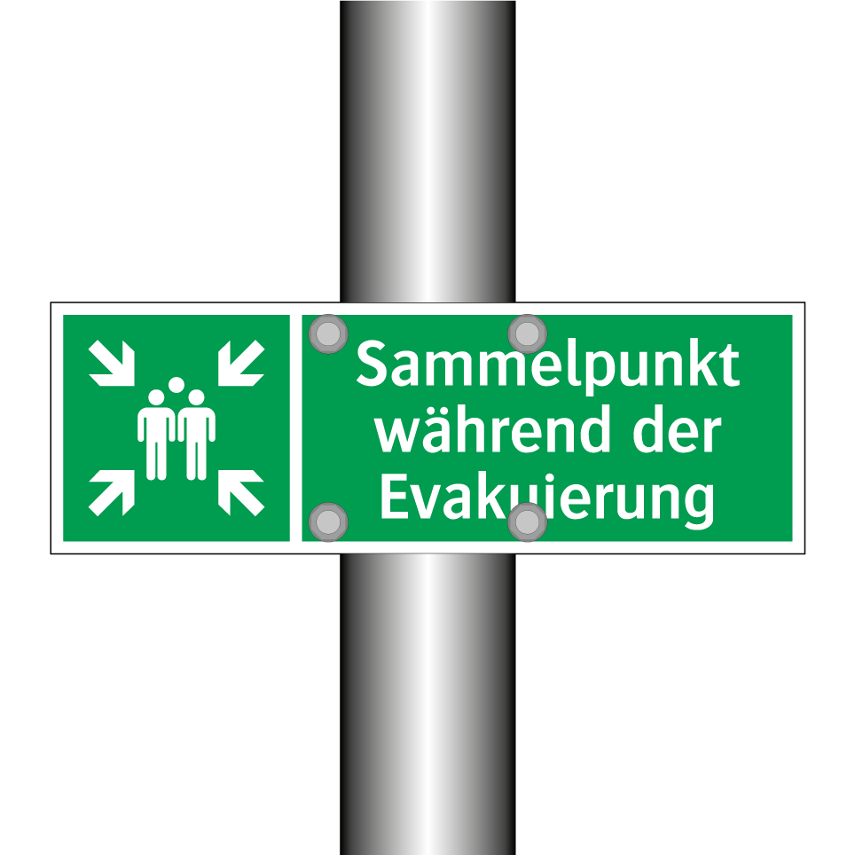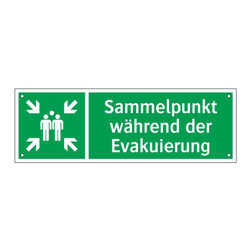 Rettungsschild mit dem Text Sammelpunkt während der Evakuierung