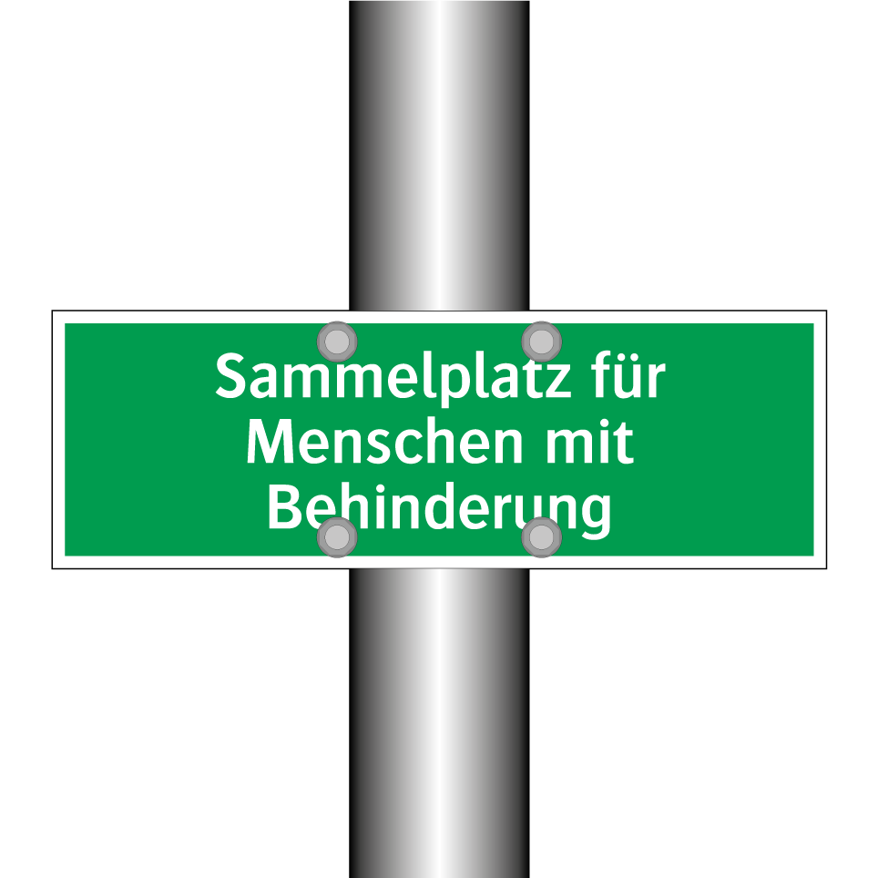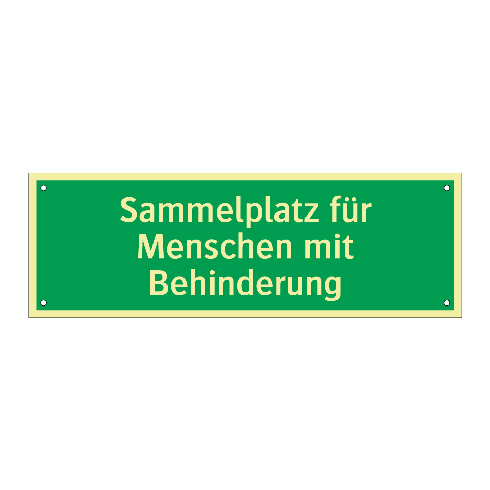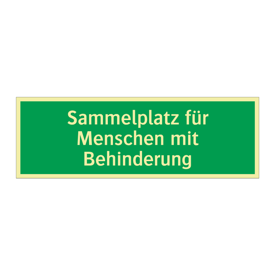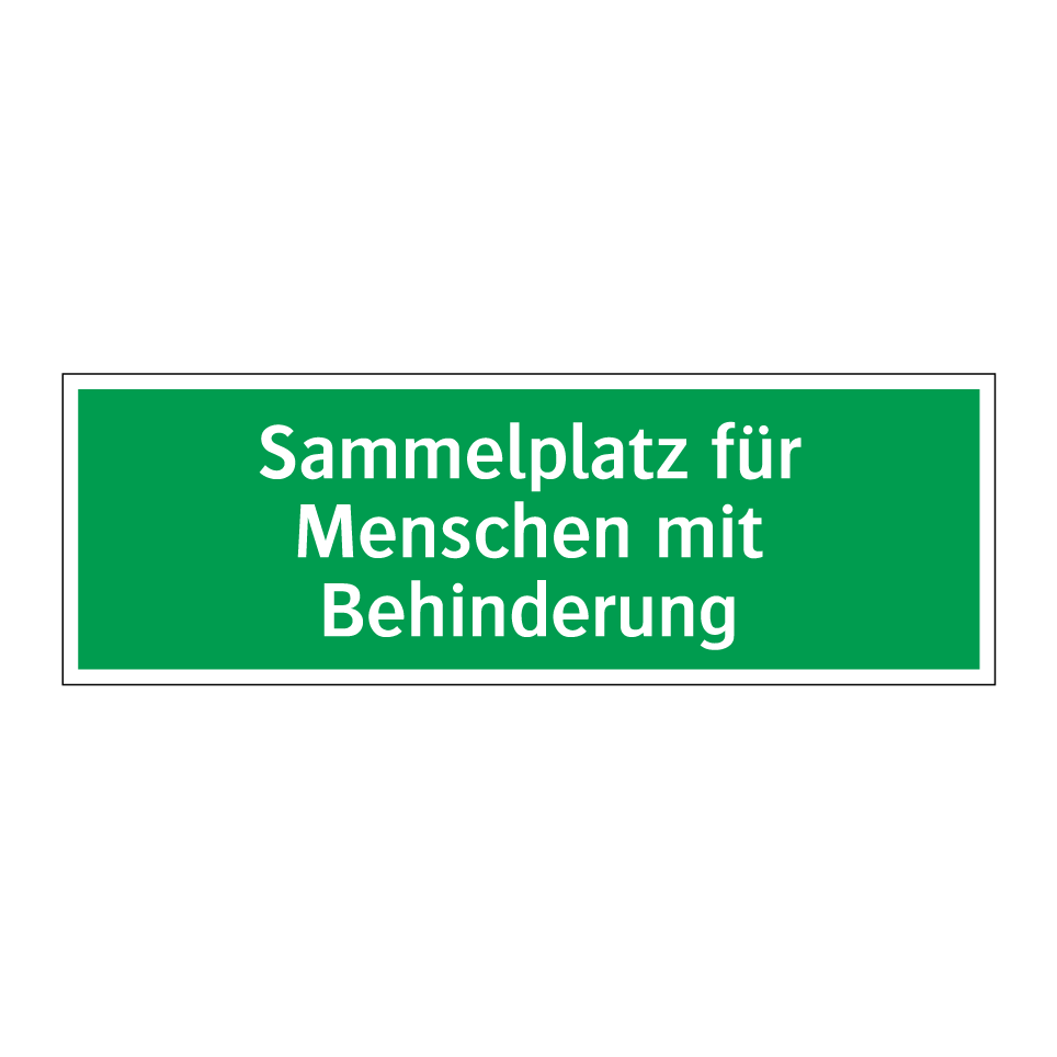 Rettungsschild mit dem Text Sammelplatz für Menschen mit Behinderung