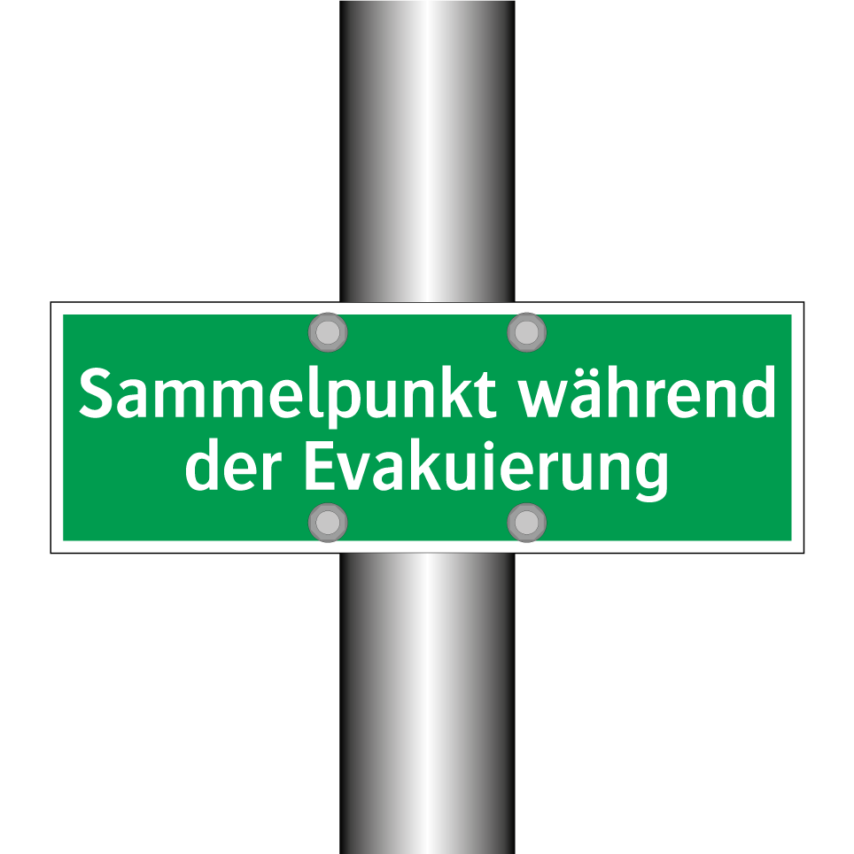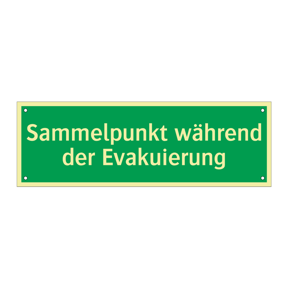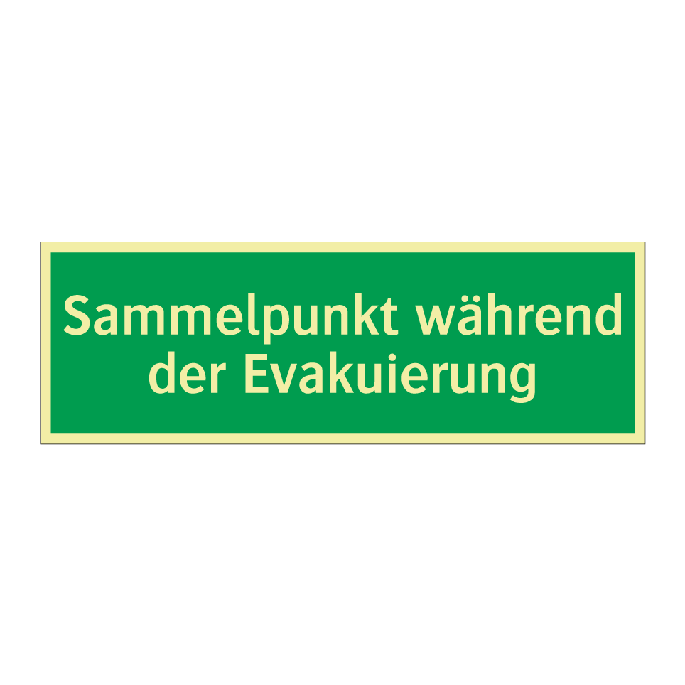 Rettungsschild mit dem Text Sammelpunkt während der Evakuierung