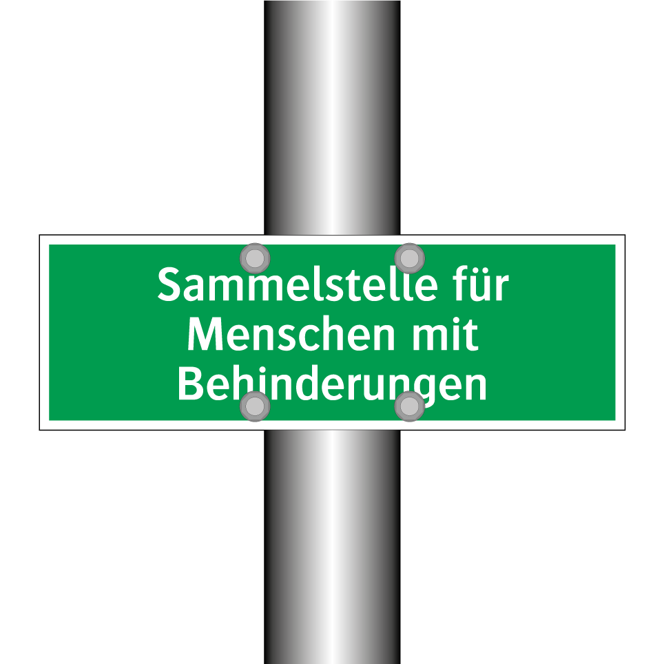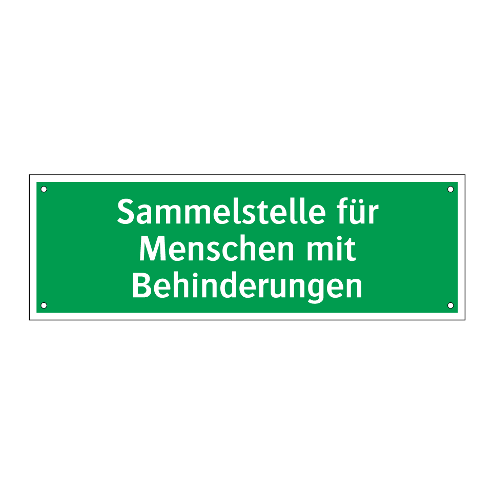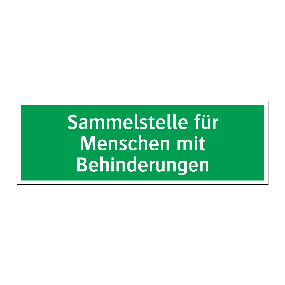 Rettungsschild mit dem Text Sammelstelle für Menschen mit Behinderungen