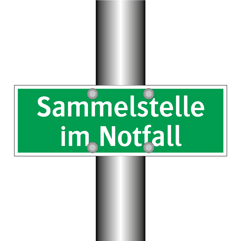 Rettungsschild mit dem Text Sammelstelle im Notfall