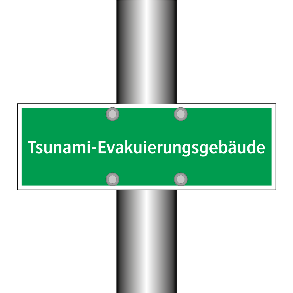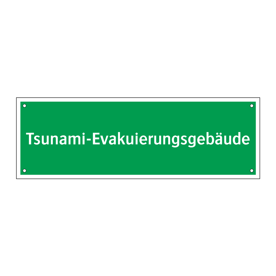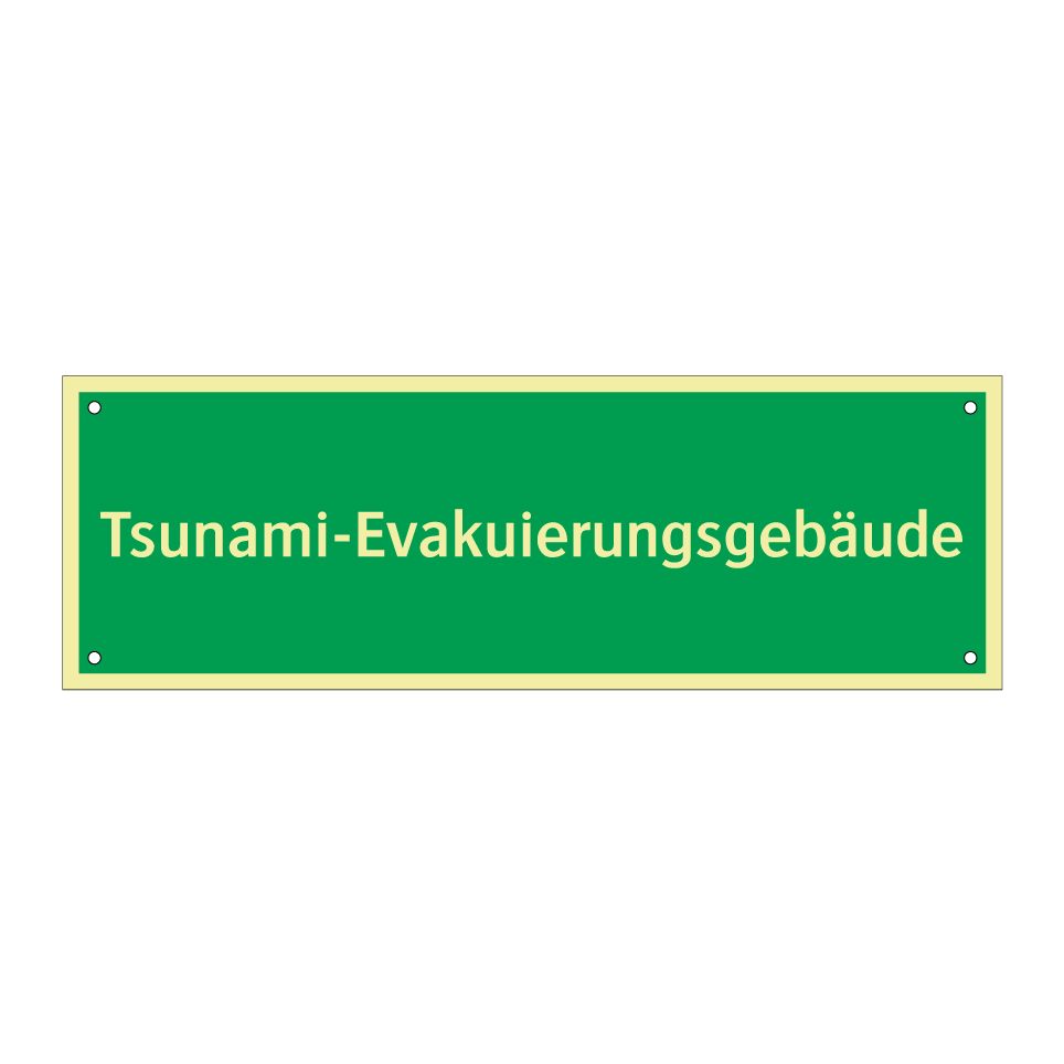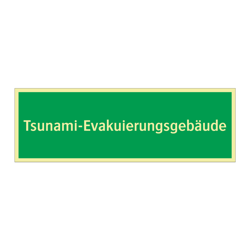 Rettungsschild mit dem Text Tsunami-Evakuierungsgebäude
