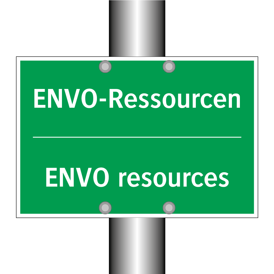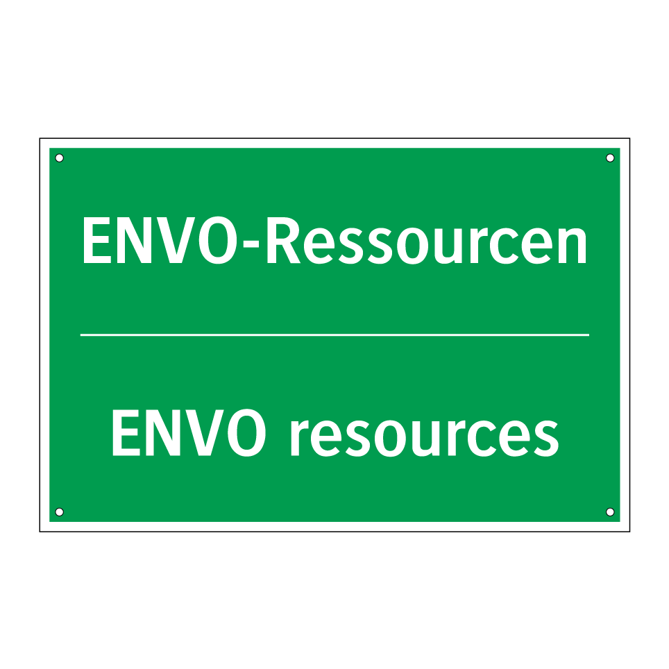 Zweisprachiges Rettungsschild mit deutschem Text ENVO-Ressourcen und englischem Text ENVO resources