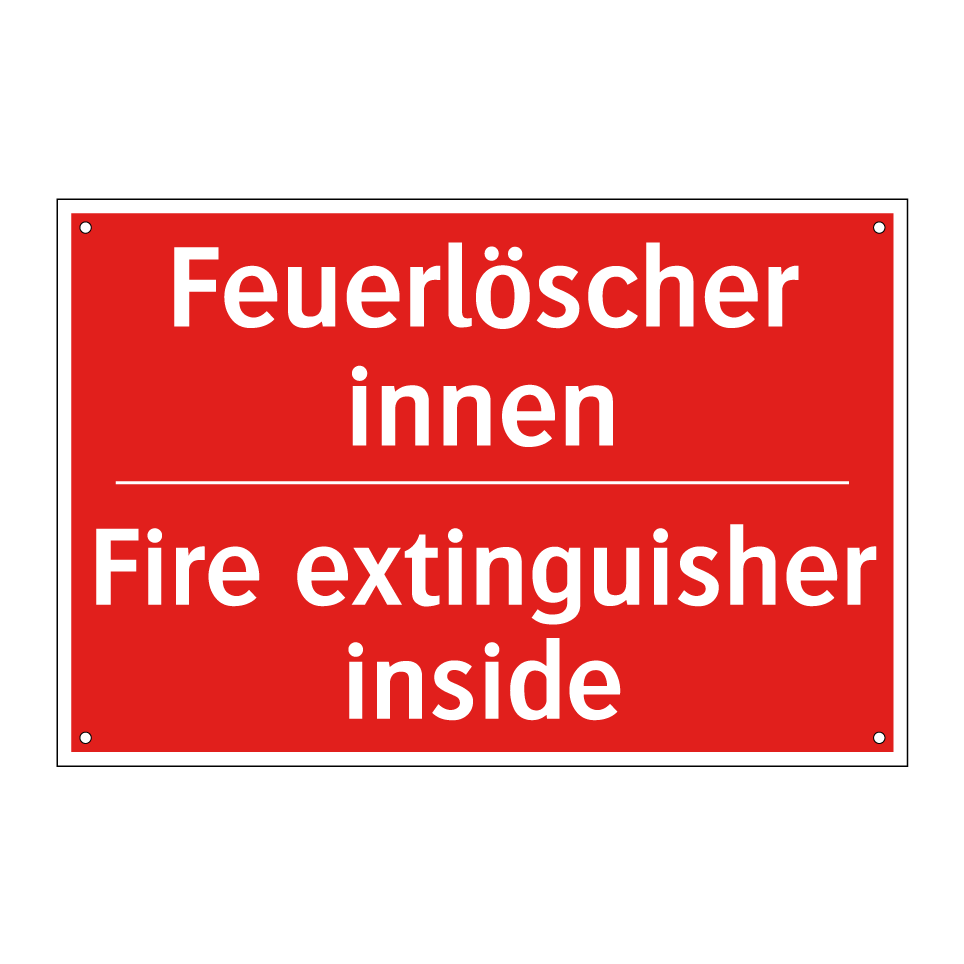 Zweisprachiges Brandschutzschild mit deutschem Text Feuerlöscher innen und englischem Text Fire extinguisher inside