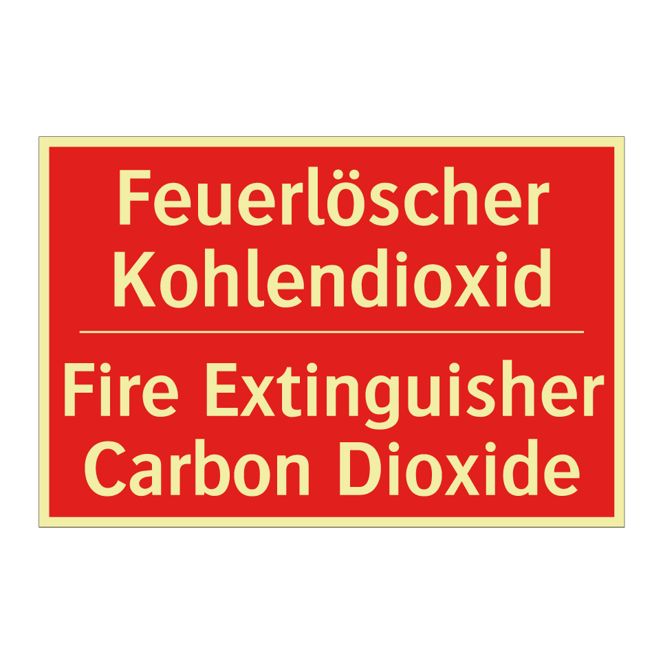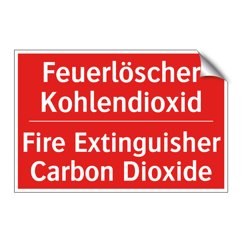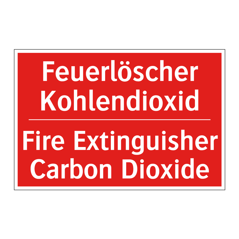Zweisprachiges Brandschutzschild mit deutschem Text Feuerlöscher Kohlendioxid und englischem Text Fire Extinguisher Carbon Dioxide