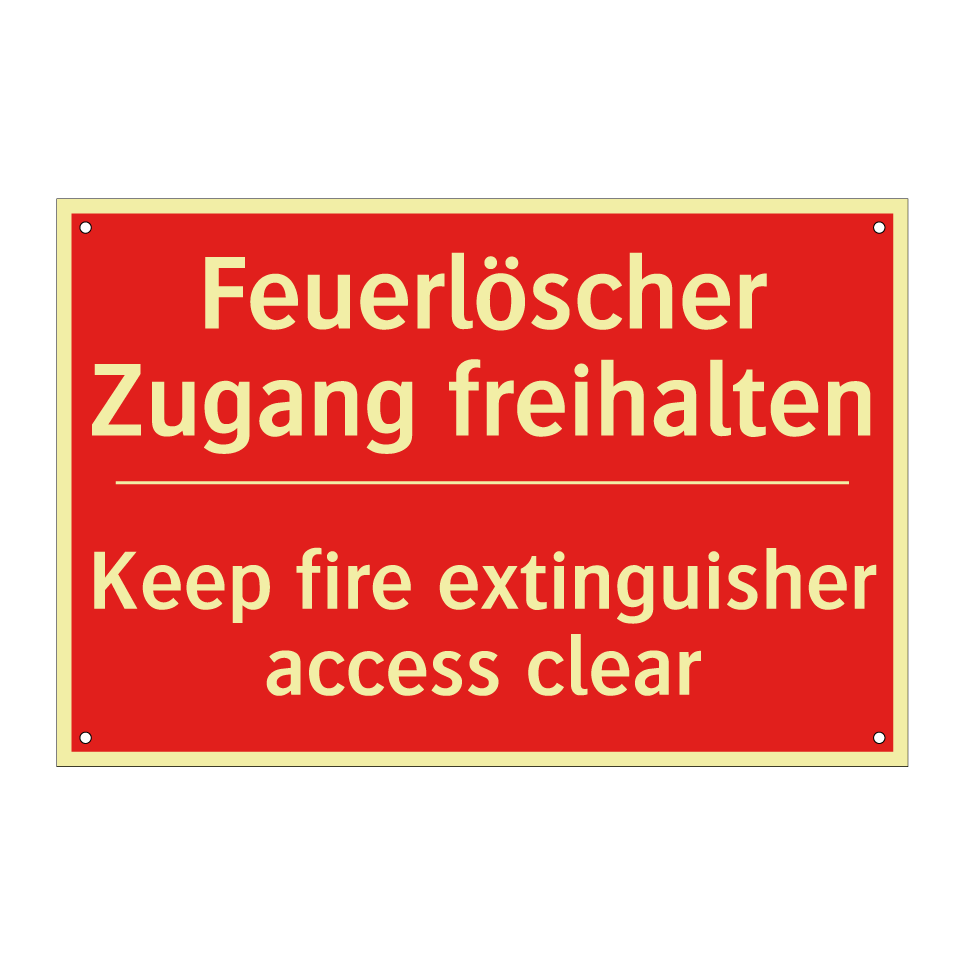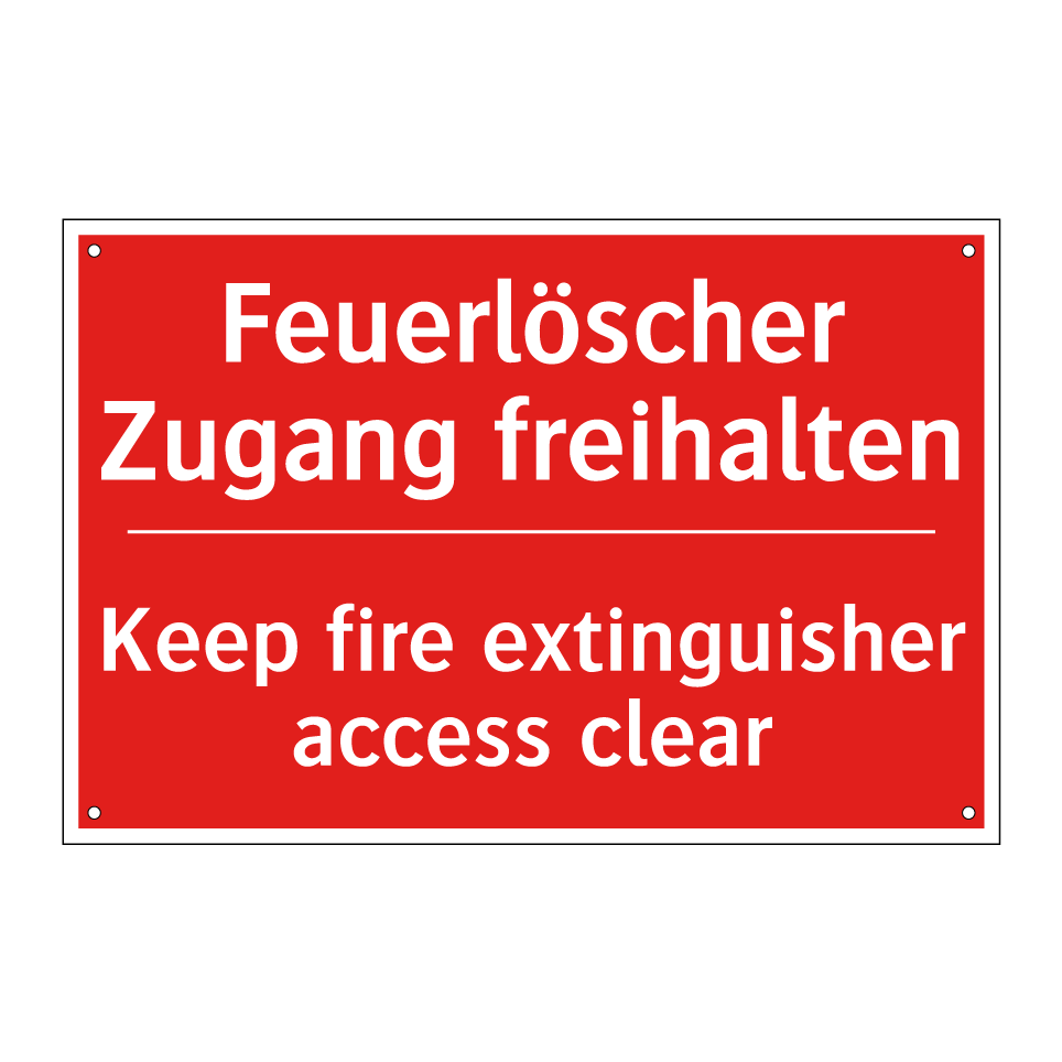 Zweisprachiges Brandschutzschild mit deutschem Text Feuerlöscher Zugang freihalten und englischem Text Keep fire extinguisher access clear