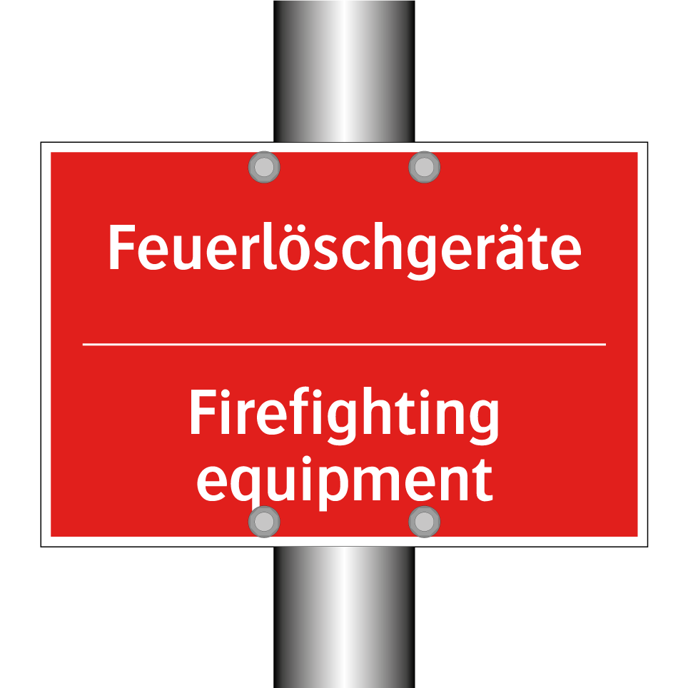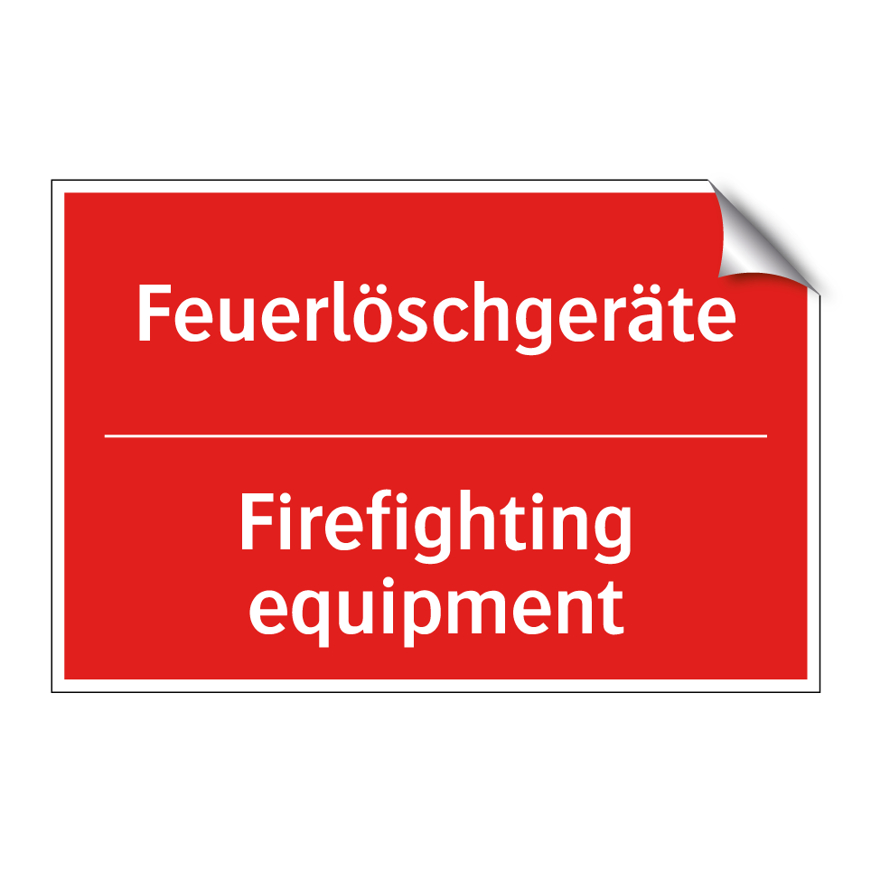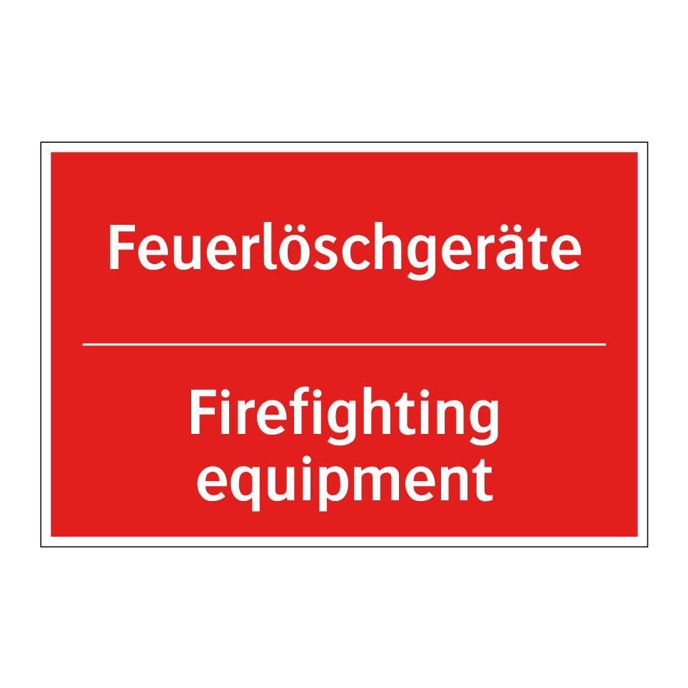 Zweisprachiges Brandschutzschild mit deutschem Text Feuerlöschgeräte und englischem Text Firefighting equipment