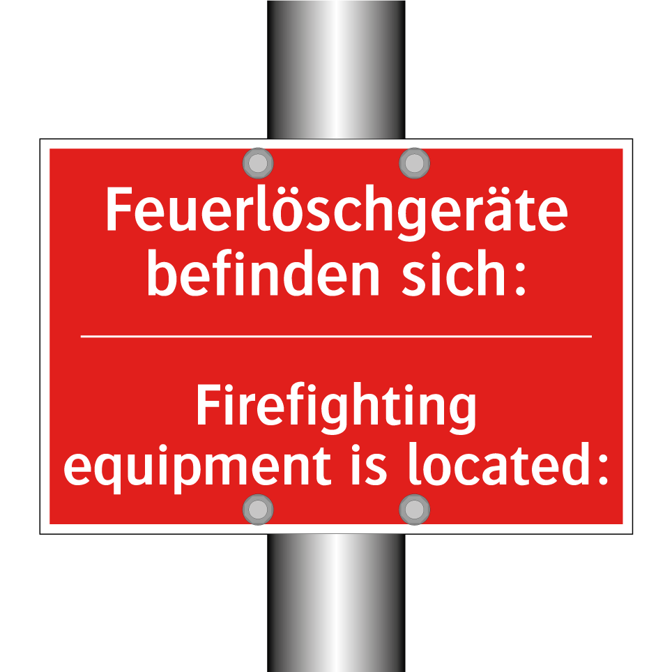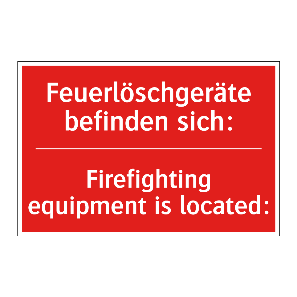 Zweisprachiges Brandschutzschild mit deutschem Text Feuerlöschgeräte befinden sich: und englischem Text Firefighting equipment is located: