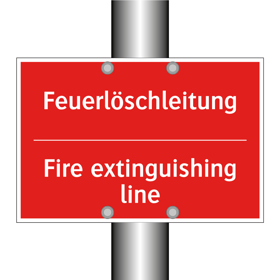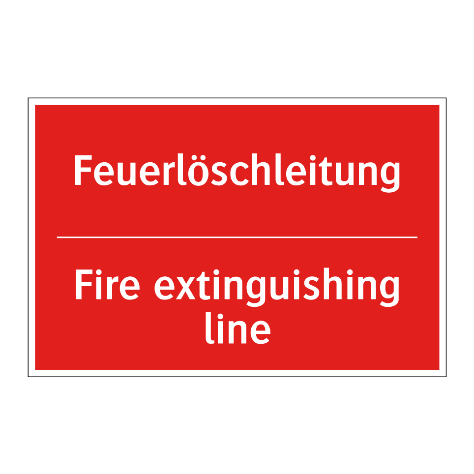 Zweisprachiges Brandschutzschild mit deutschem Text Feuerlöschleitung und englischem Text Fire extinguishing line