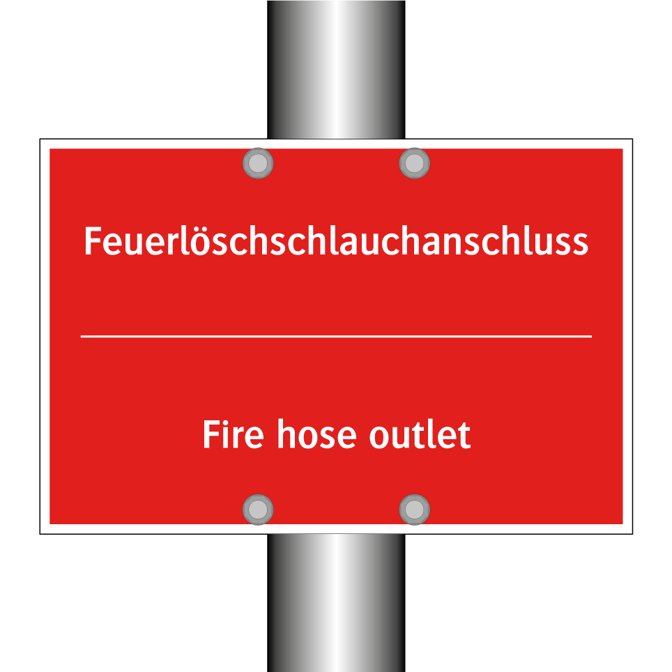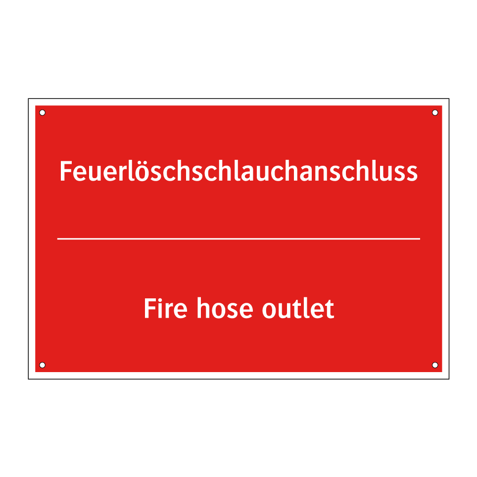 Zweisprachiges Brandschutzschild mit deutschem Text Feuerlöschschlauchanschluss und englischem Text Fire hose outlet