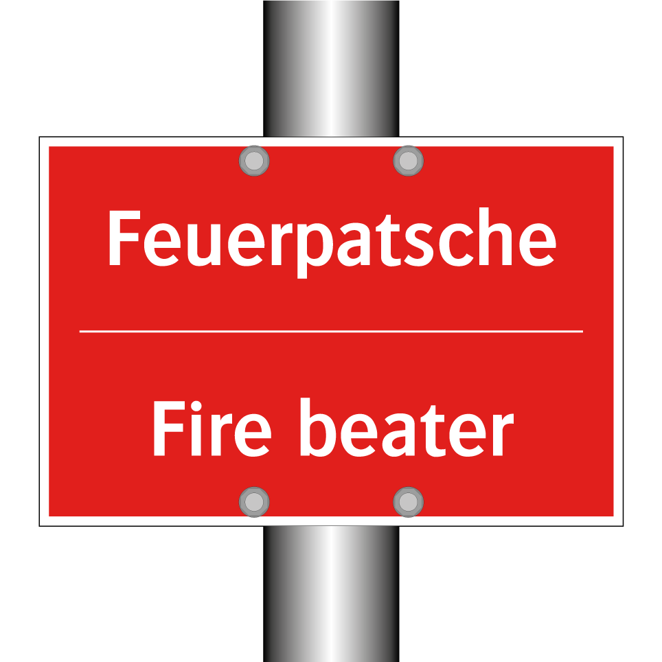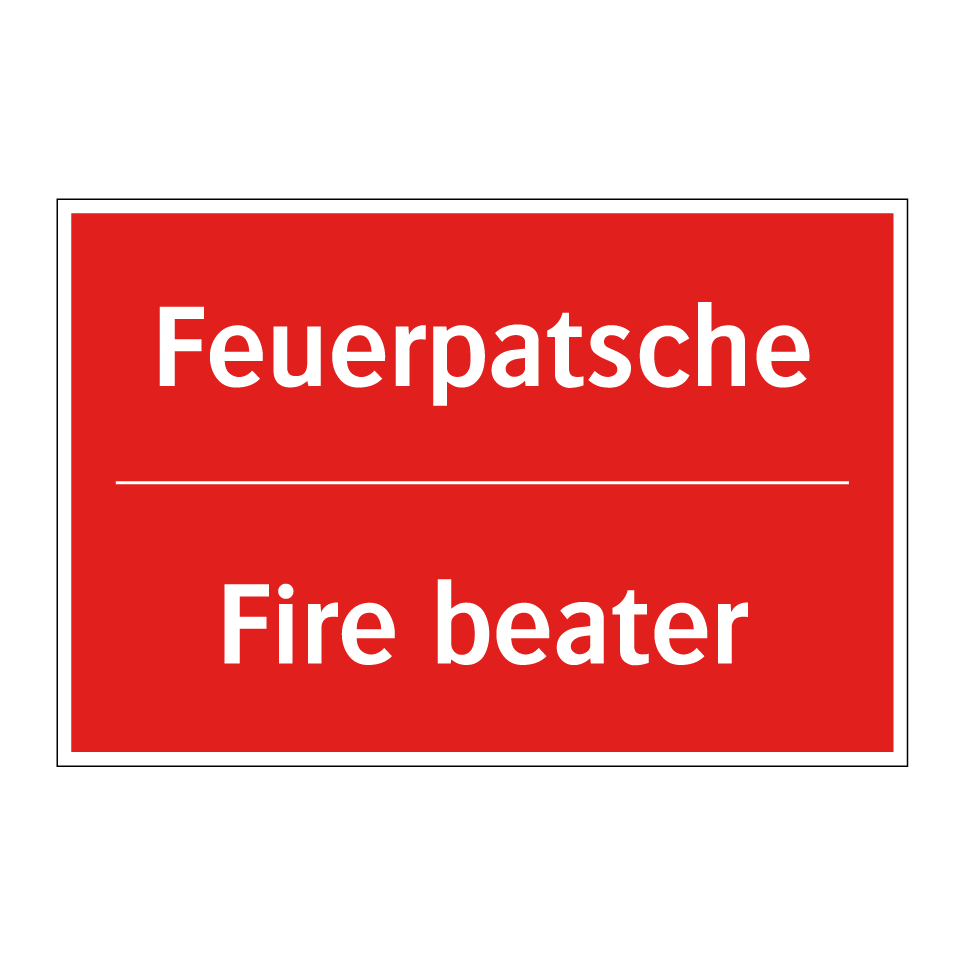 Zweisprachiges Brandschutzschild mit deutschem Text Feuerpatsche und englischem Text Fire beater