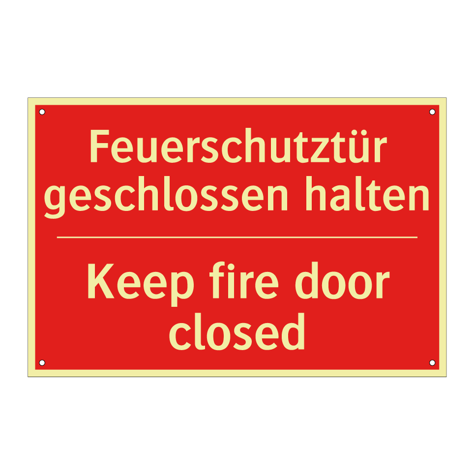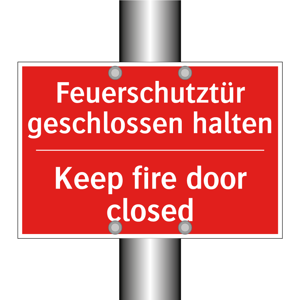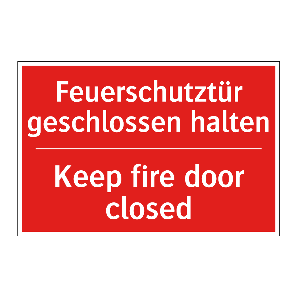Zweisprachiges Brandschutzschild mit deutschem Text Feuerschutztür geschlossen halten und englischem Text Keep fire door closed