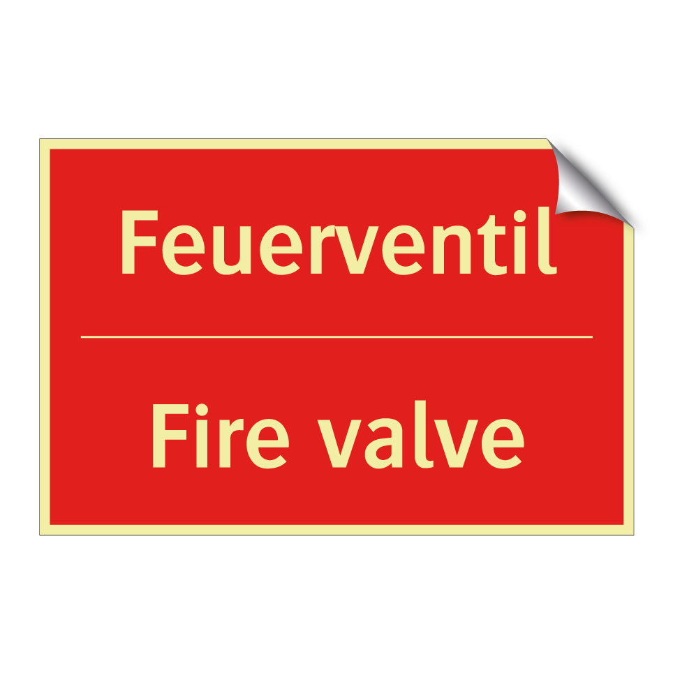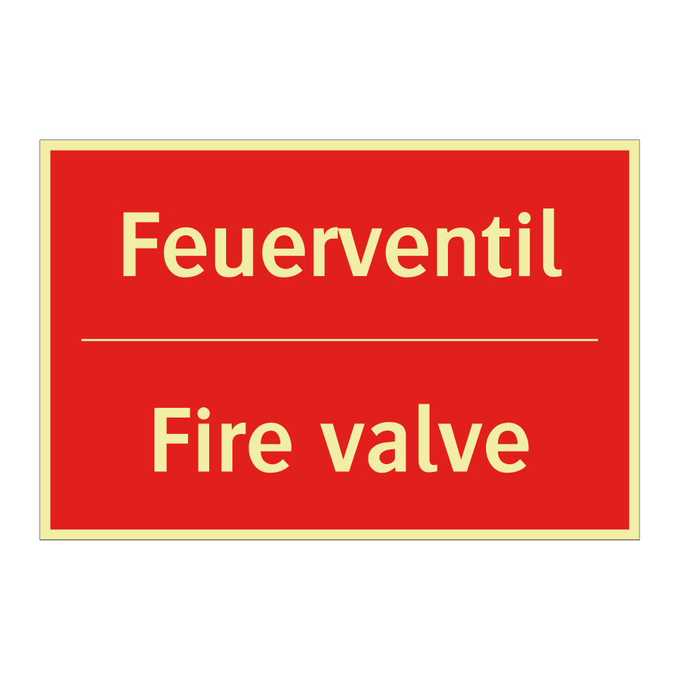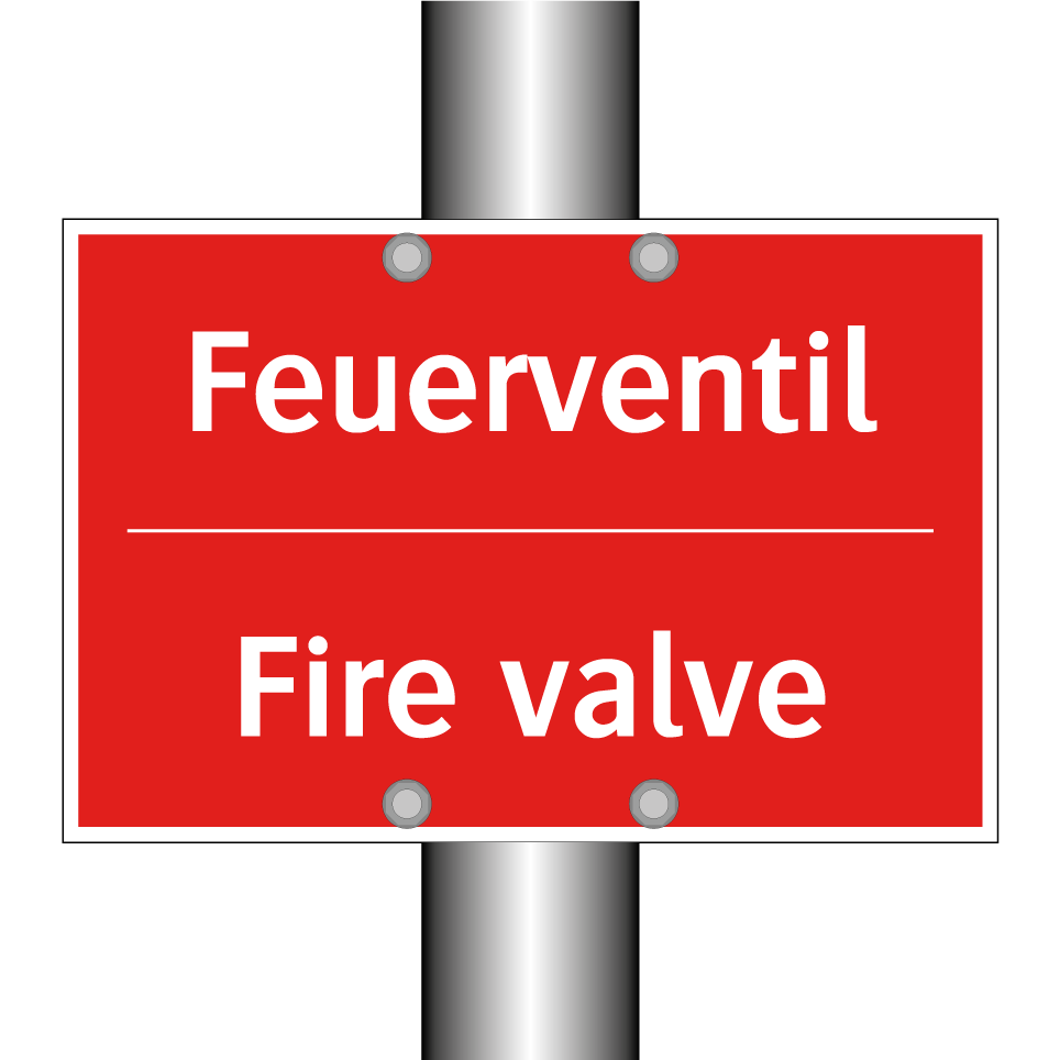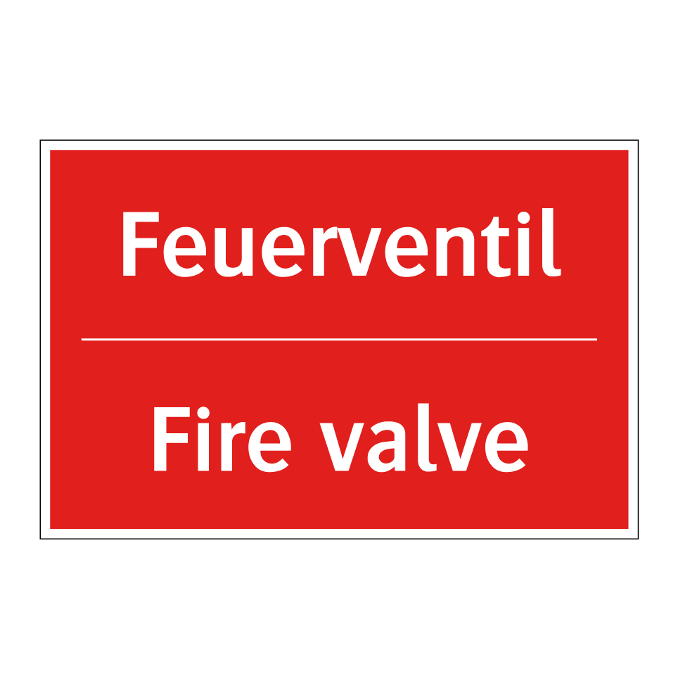 Zweisprachiges Brandschutzschild mit deutschem Text Feuerventil und englischem Text Fire valve
