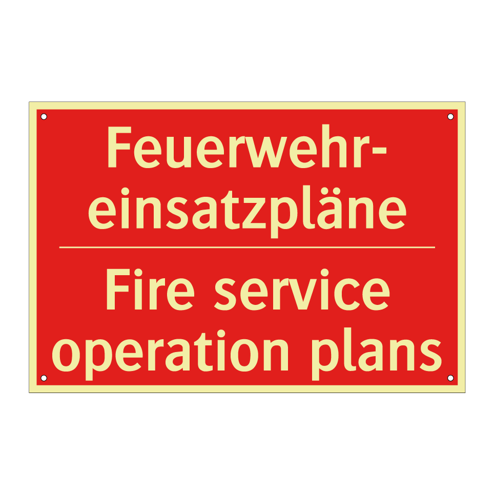 Zweisprachiges Brandschutzschild mit deutschem Text Feuerwehr- einsatzpläne und englischem Text Fire service operation plans