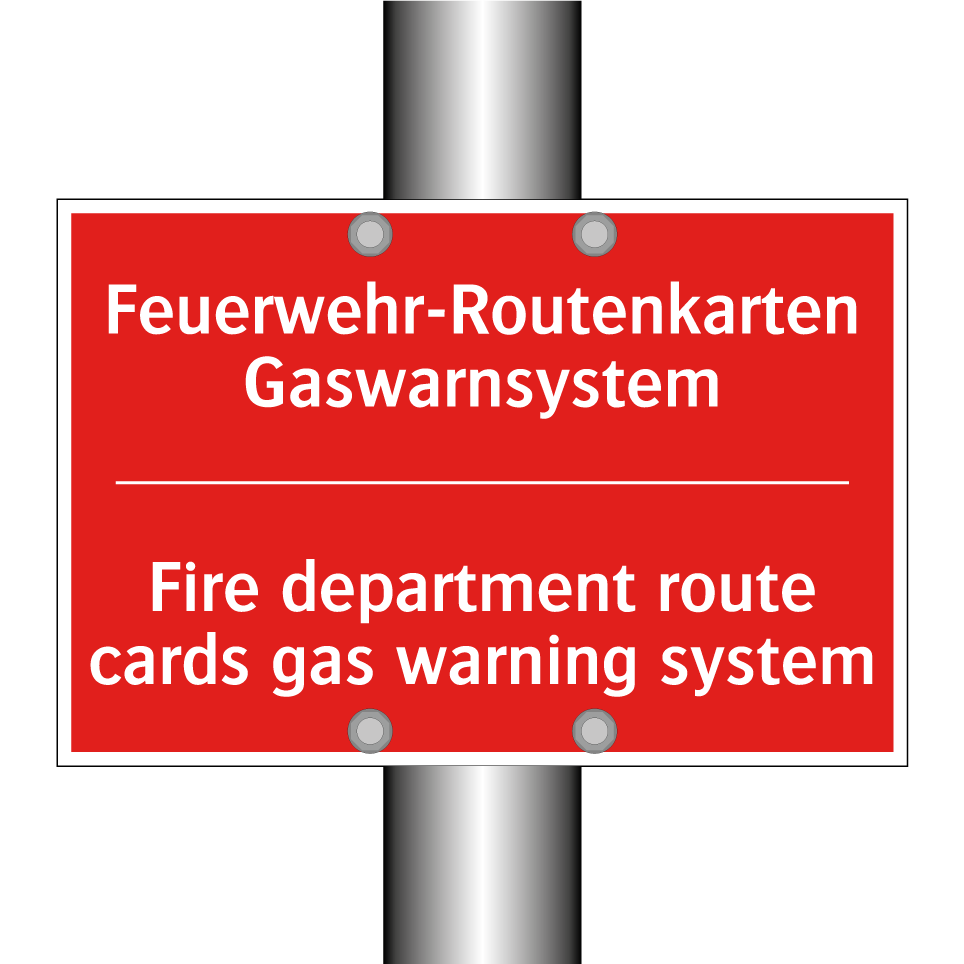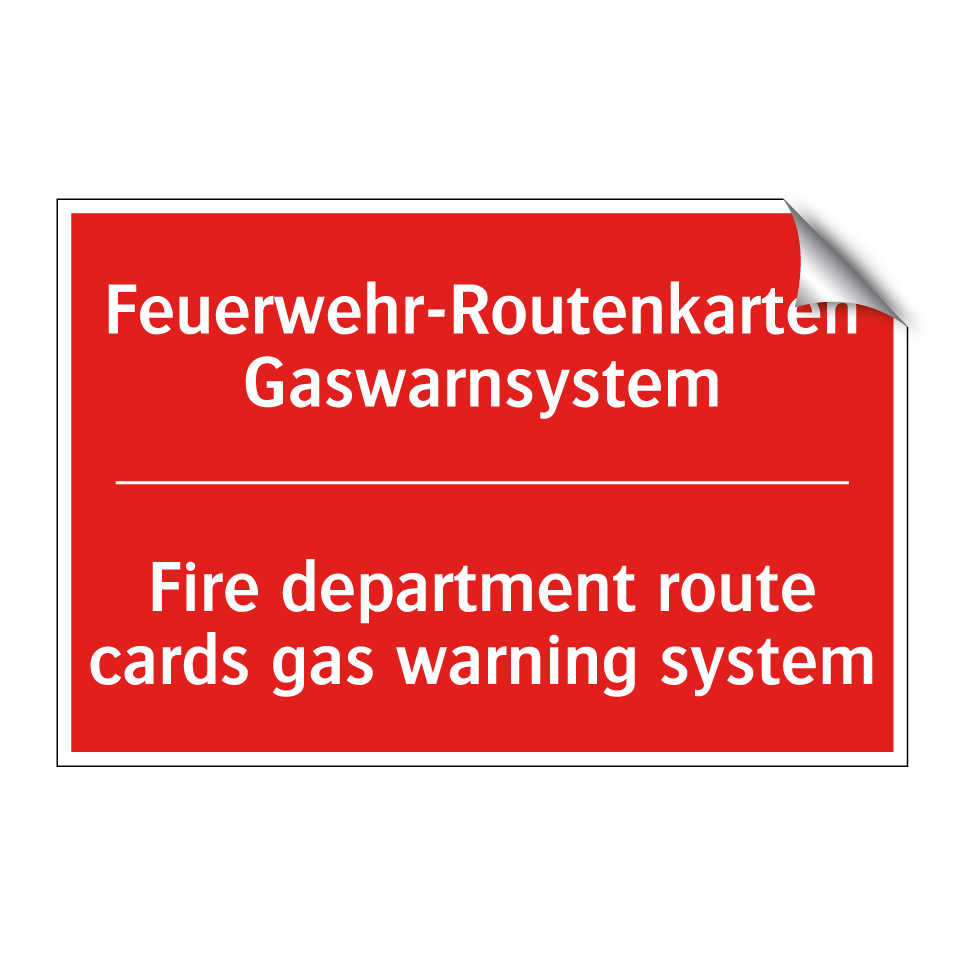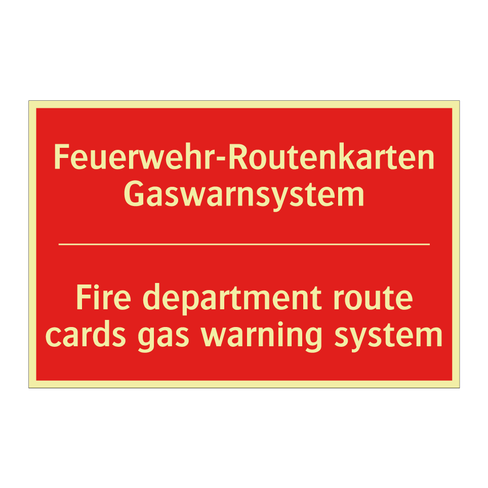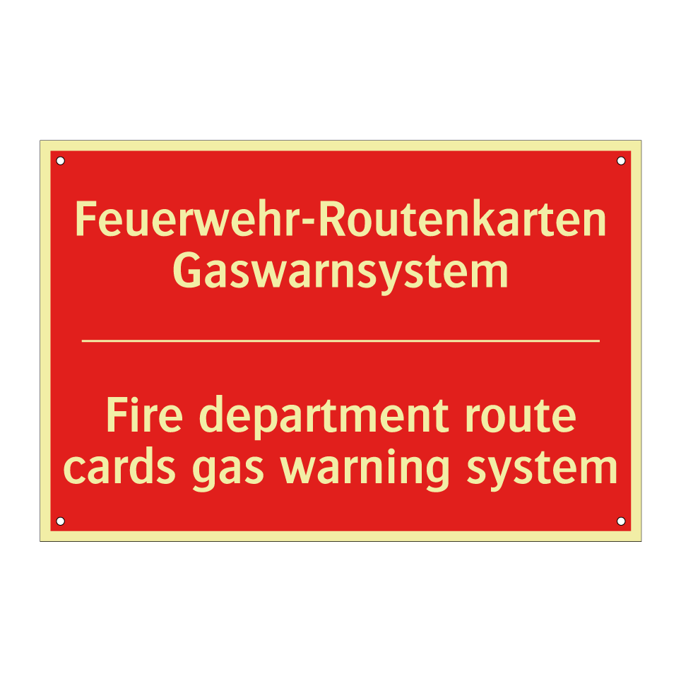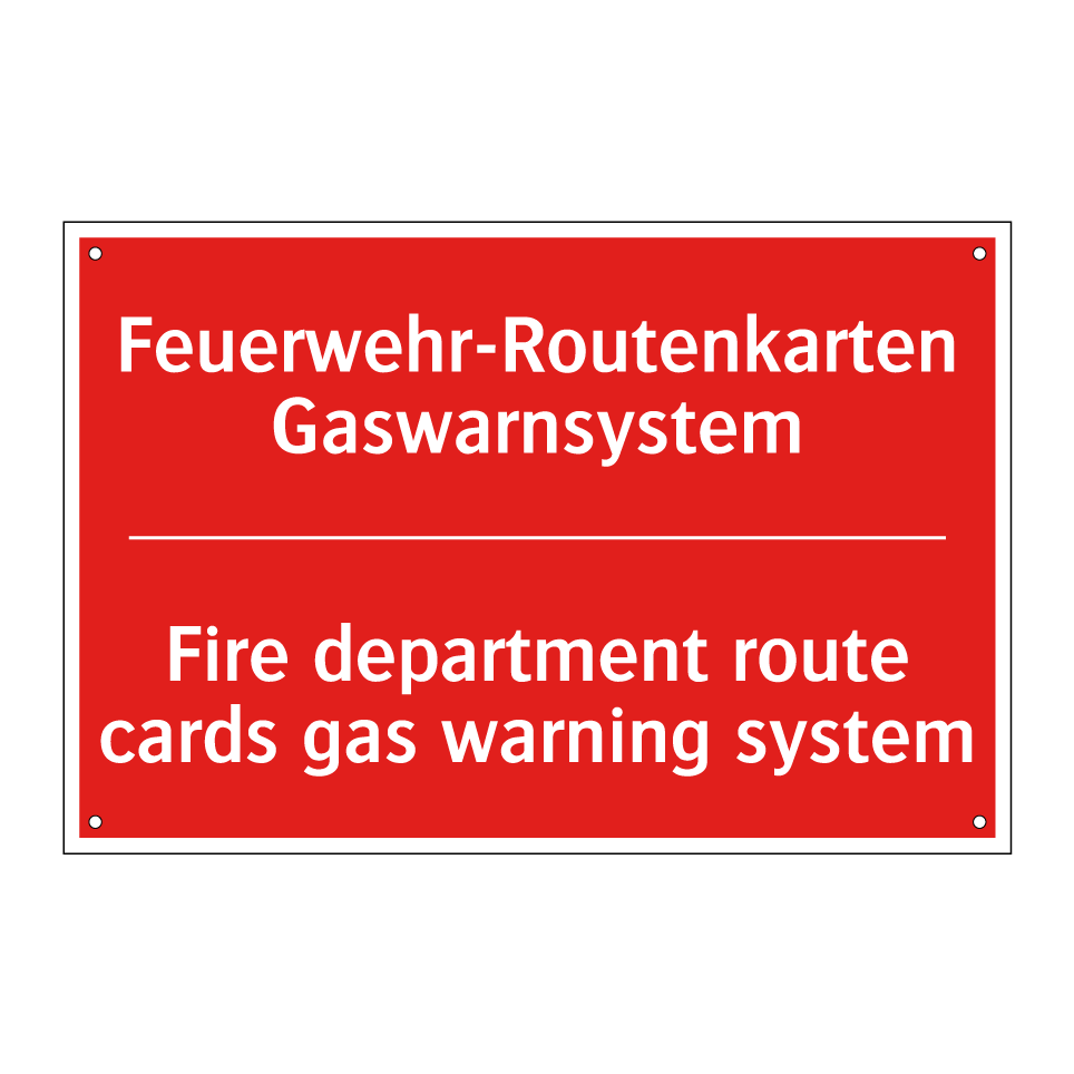 Zweisprachiges Brandschutzschild mit deutschem Text Feuerwehr-Routenkarten Gaswarnsystem und englischem Text Fire department route cards gas warning system