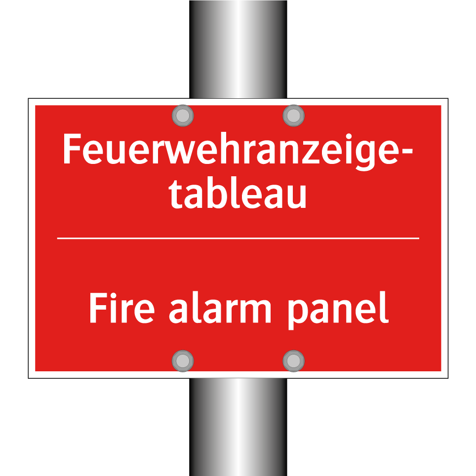 Zweisprachiges Brandschutzschild mit deutschem Text Feuerwehranzeige- tableau und englischem Text Fire alarm panel