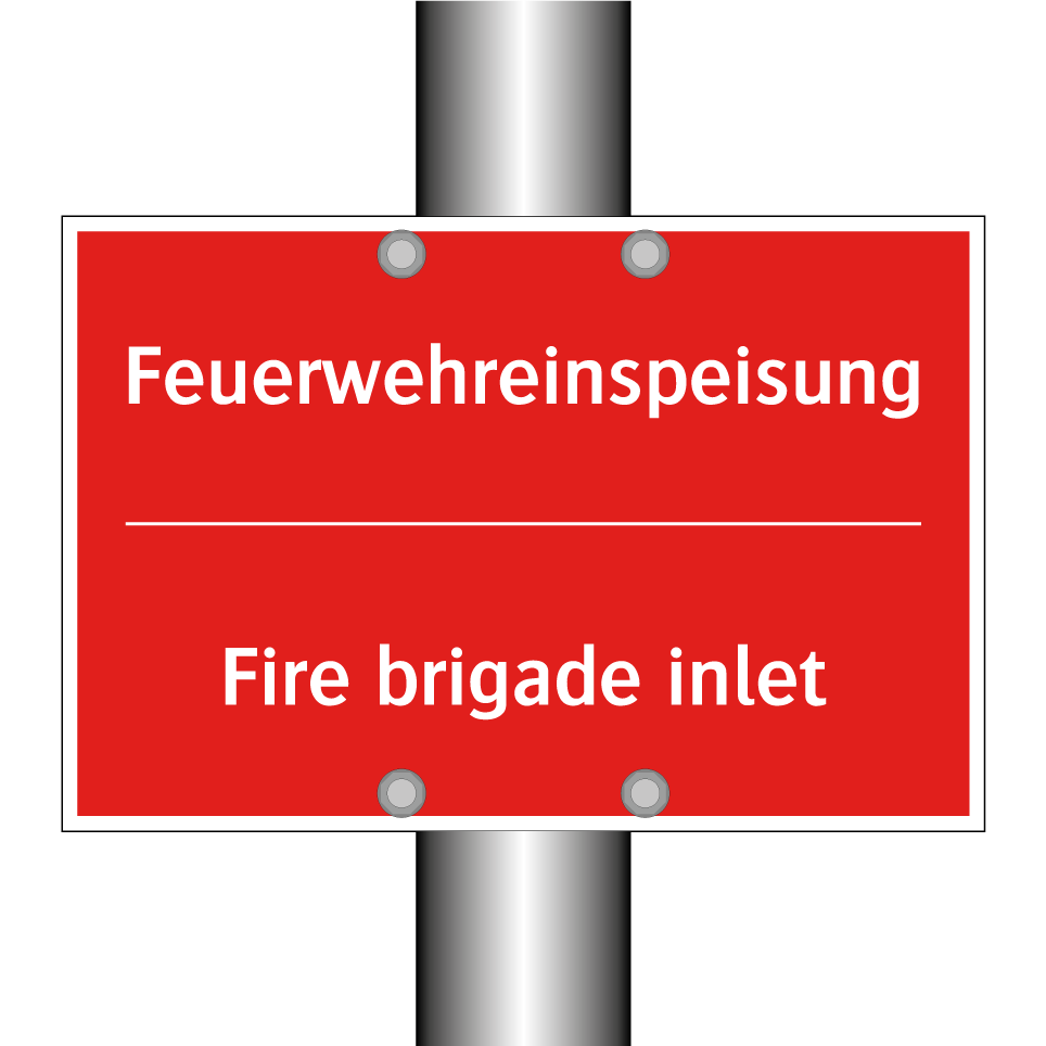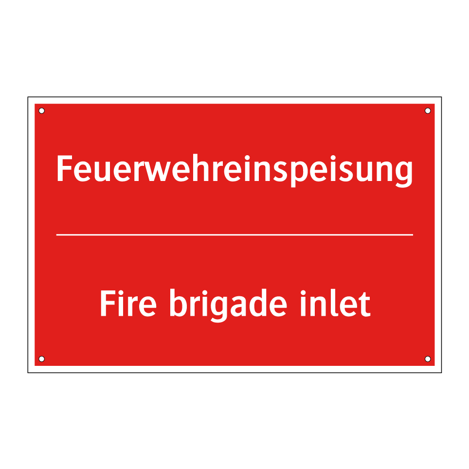 Zweisprachiges Brandschutzschild mit deutschem Text Feuerwehreinspeisung und englischem Text Fire brigade inlet