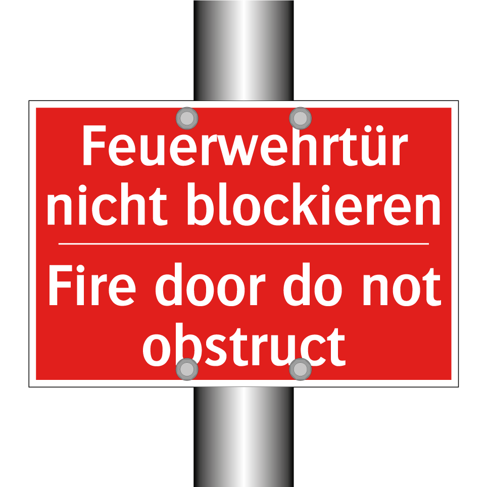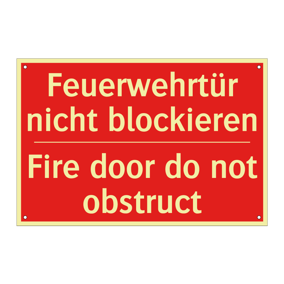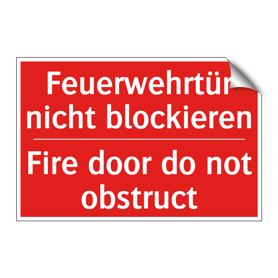 Zweisprachiges Brandschutzschild mit deutschem Text Feuerwehrtür nicht blockieren und englischem Text Fire door do not obstruct