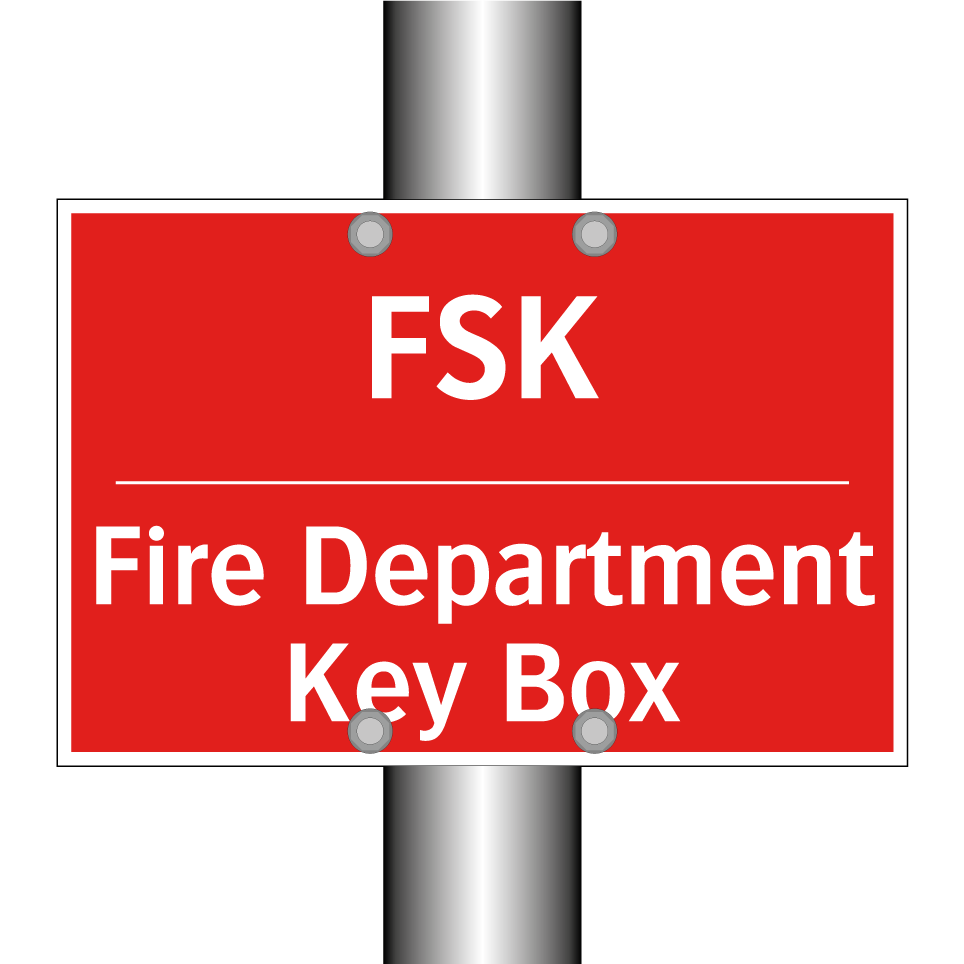 Zweisprachiges Brandschutzschild mit deutschem Text FSK und englischem Text Fire Department Key Box