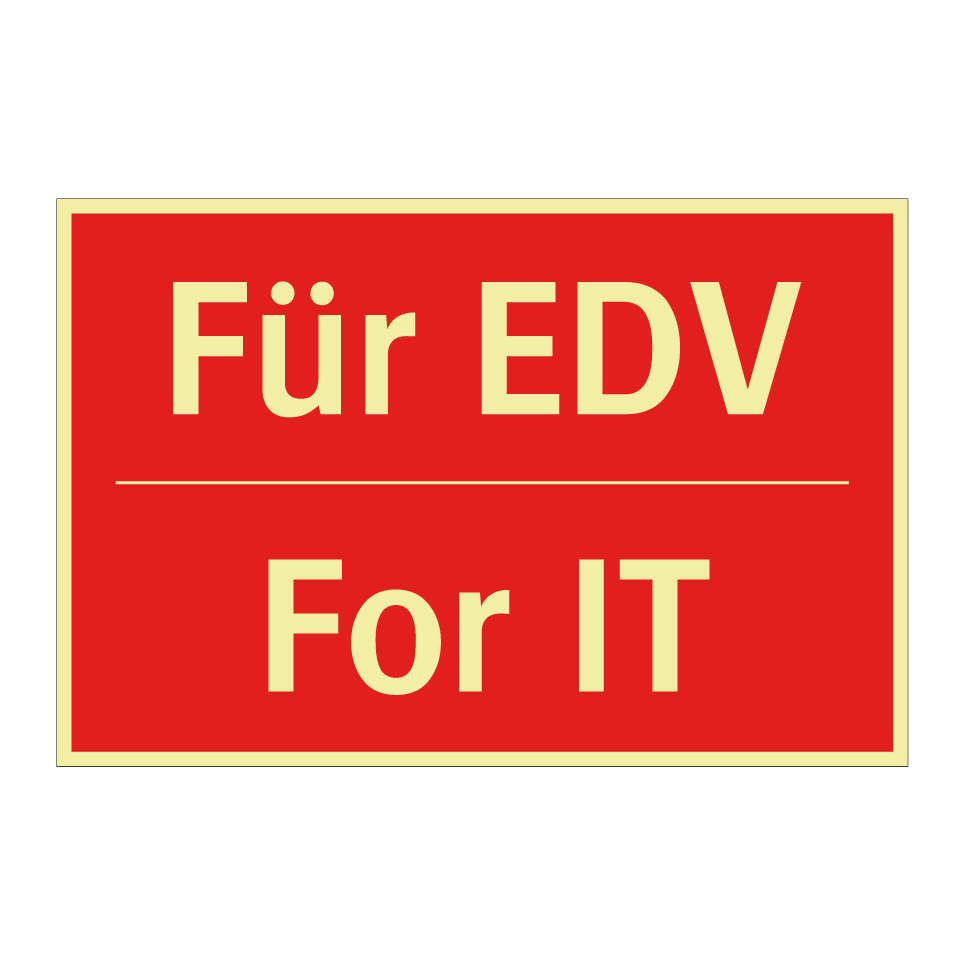 Zweisprachiges Brandschutzschild mit deutschem Text Für EDV und englischem Text For IT