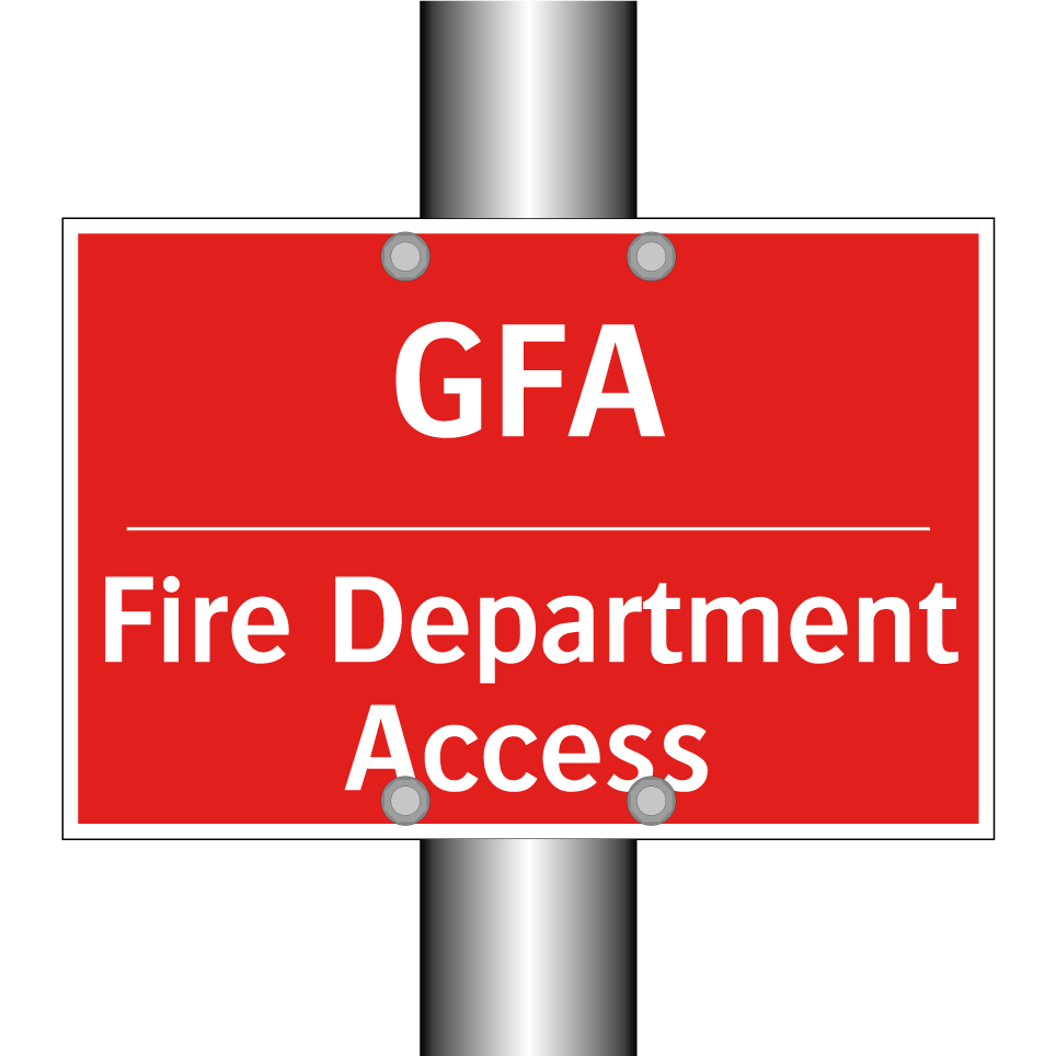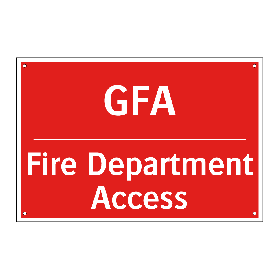 Zweisprachiges Brandschutzschild mit deutschem Text GFA und englischem Text Fire Department Access