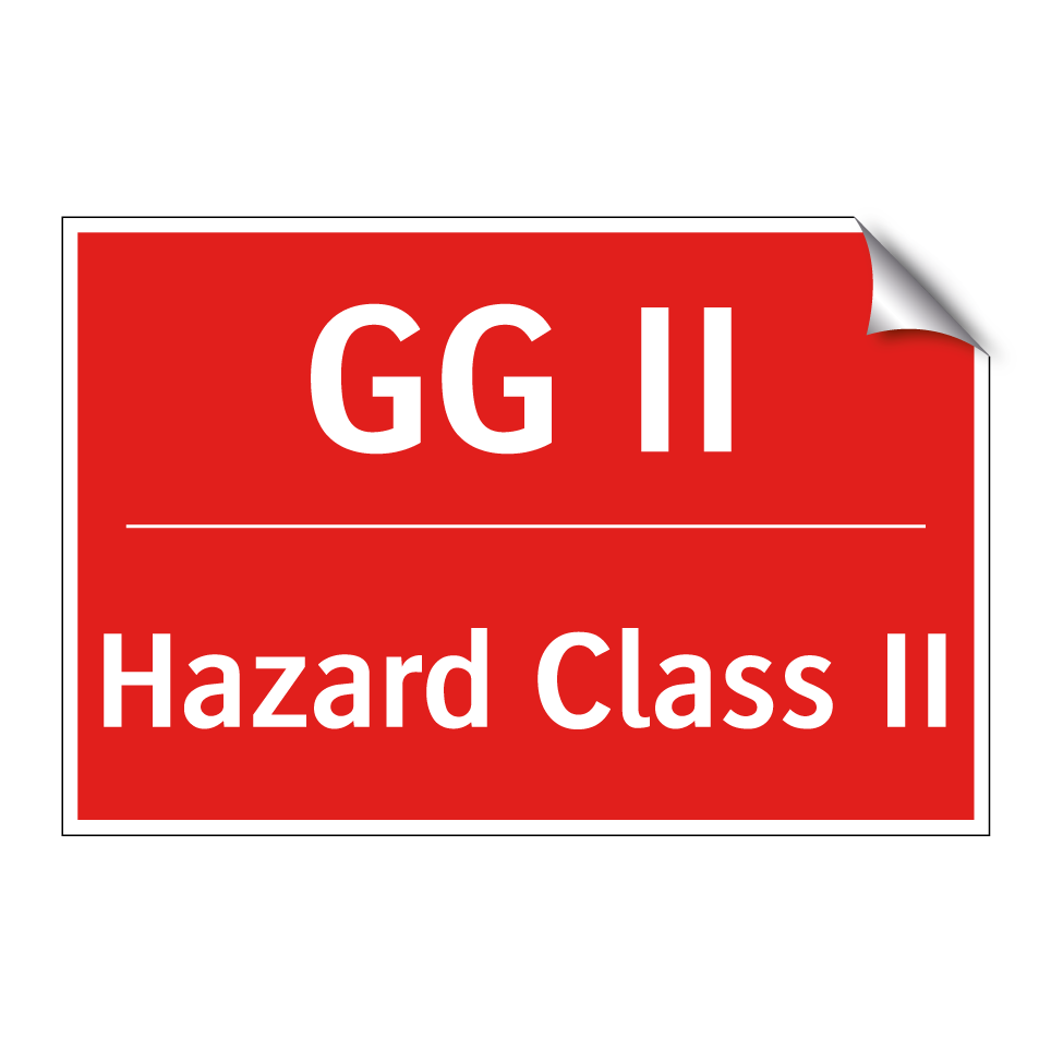 Zweisprachiges Brandschutzschild mit deutschem Text GG II und englischem Text Hazard Class II