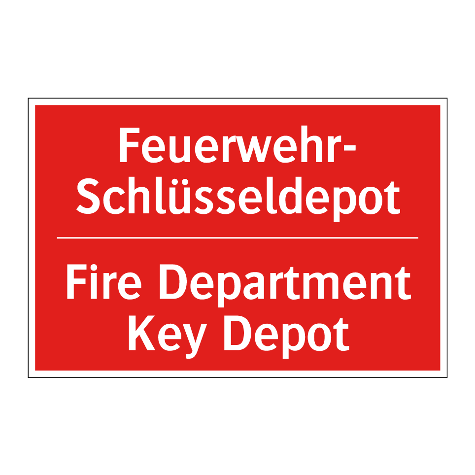 Zweisprachiges Brandschutzschild mit deutschem Text Feuerwehr- Schlüsseldepot und englischem Text Fire Department Key Depot