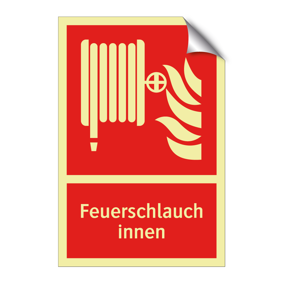 Brandschutzschild mit dem Text Feuerschlauch innen