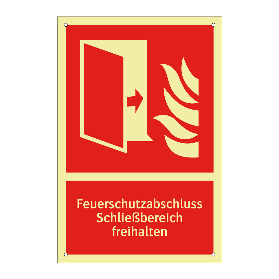 Brandschutzschild mit dem Text Feuerschutzabschluss Schließbereich freihalten