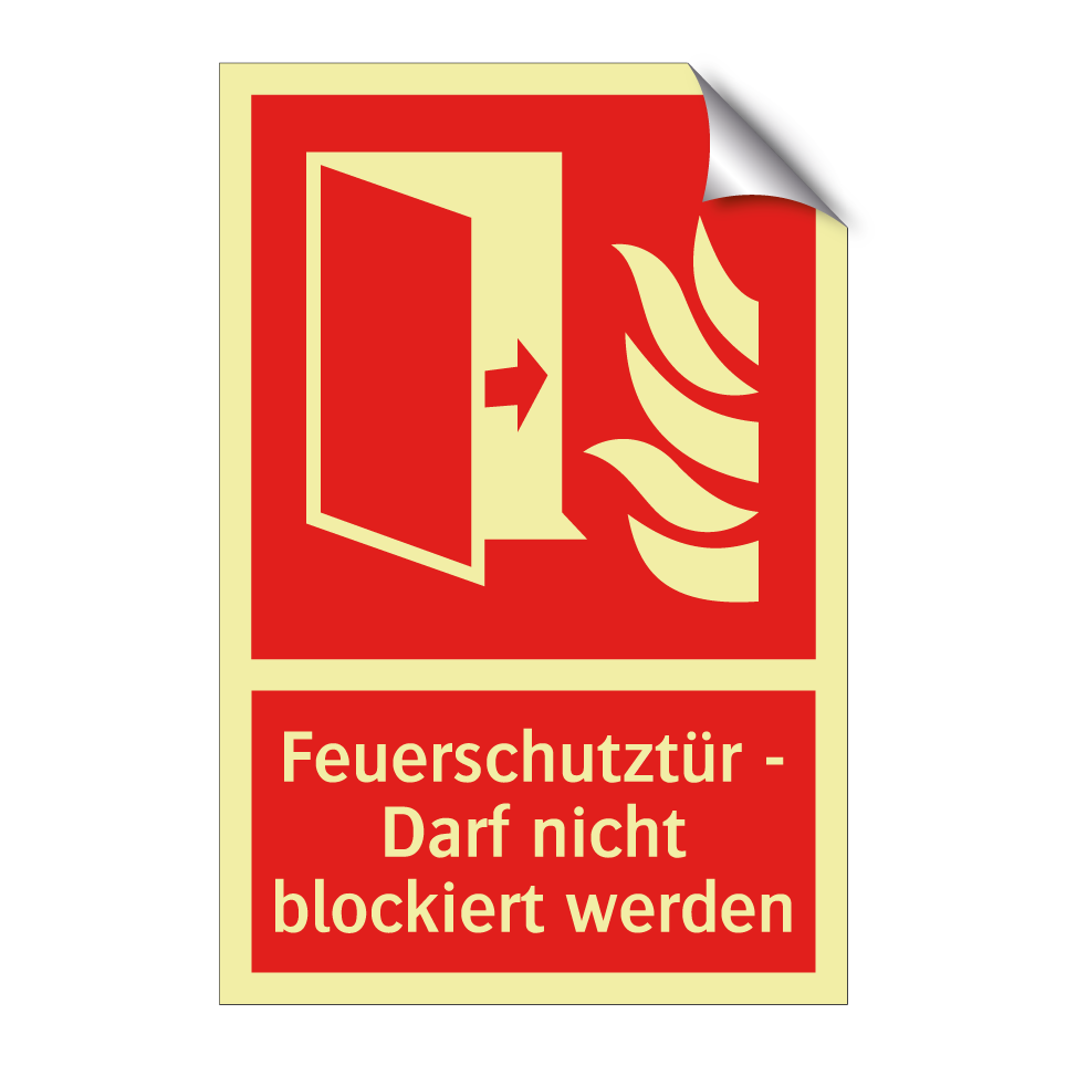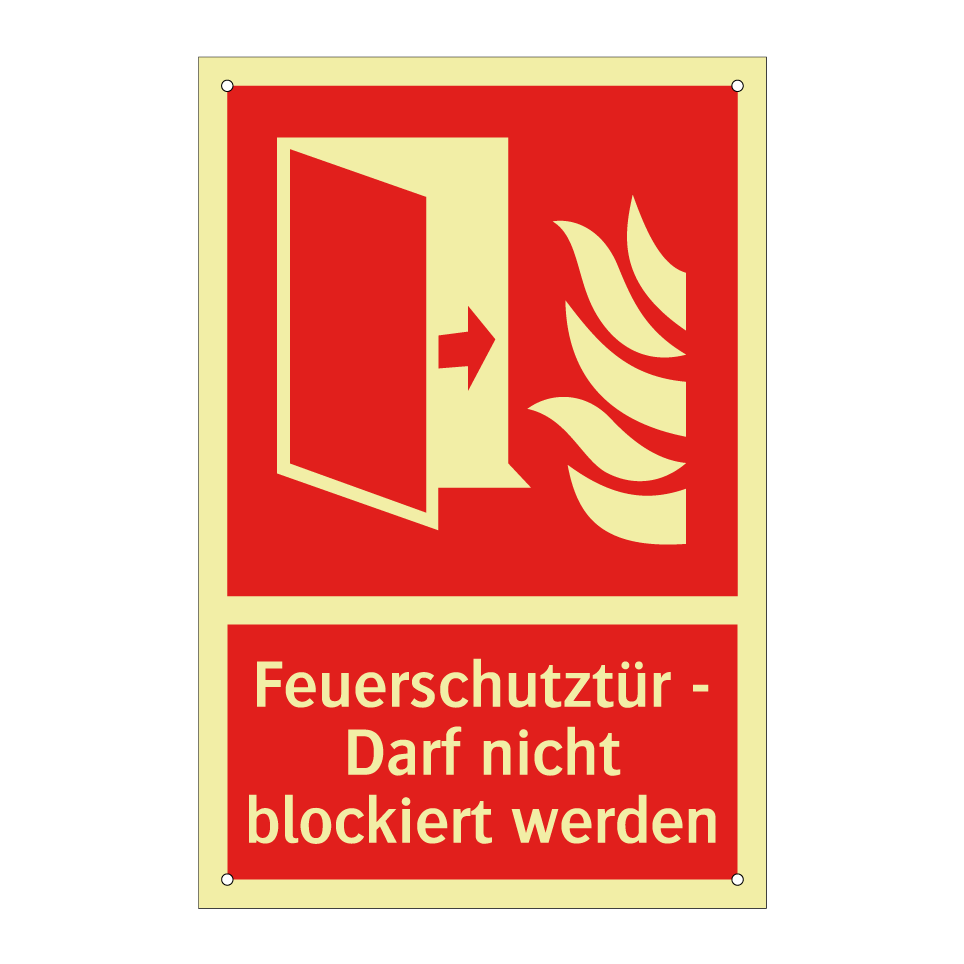 Brandschutzschild mit dem Text Feuerschutztür - Darf nicht blockiert werden