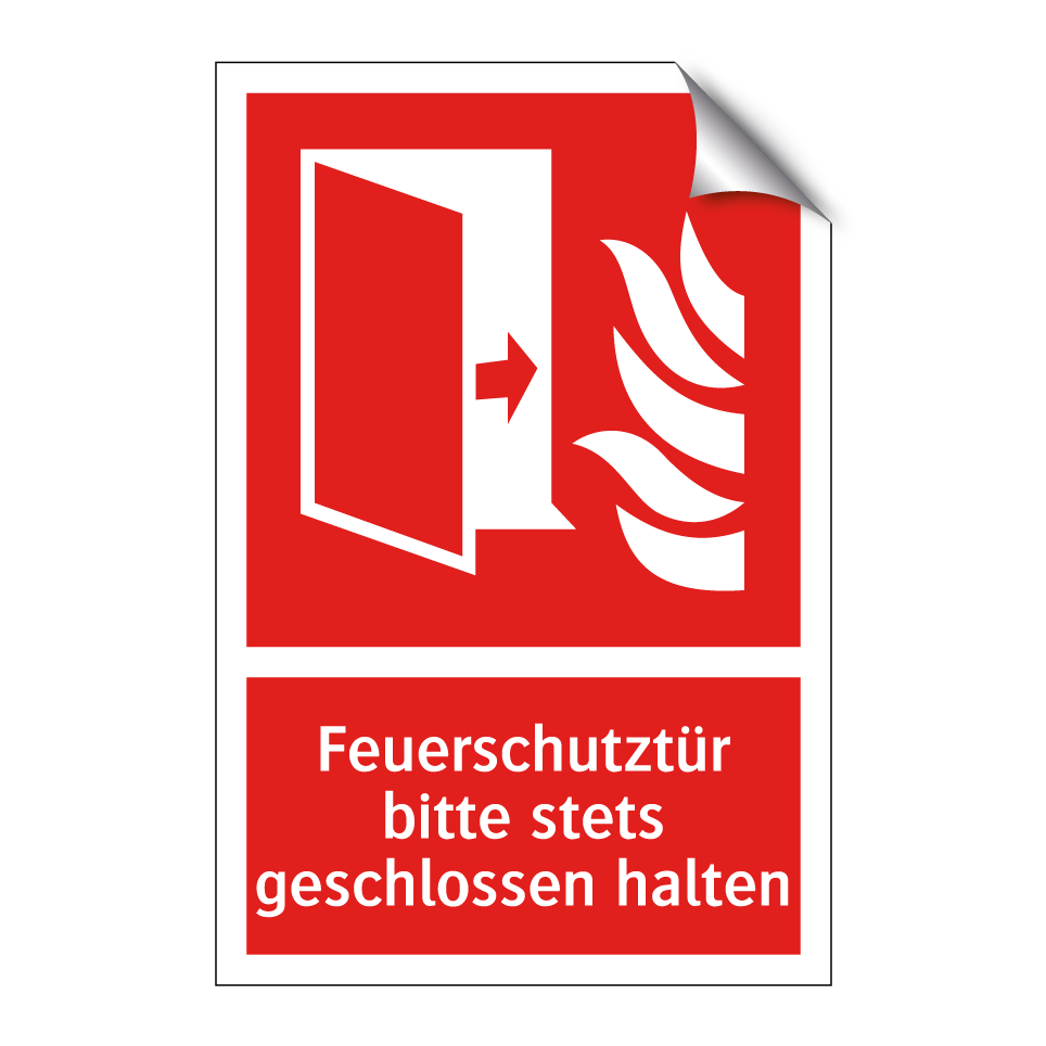 Brandschutzschild mit dem Text Feuerschutztür bitte stets geschlossen halten