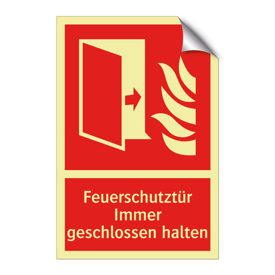 Brandschutzschild mit dem Text Feuerschutztür Immer geschlossen halten