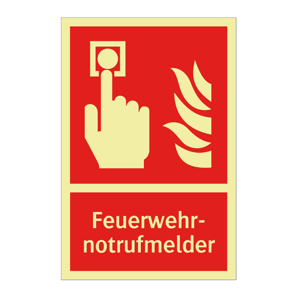 Brandschutzschild mit dem Text Feuerwehr- notrufmelder