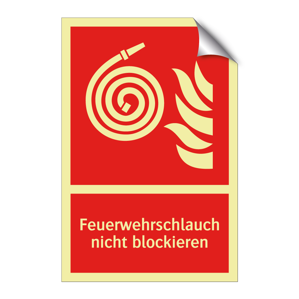 Brandschutzschild mit dem Text Feuerwehrschlauch nicht blockieren