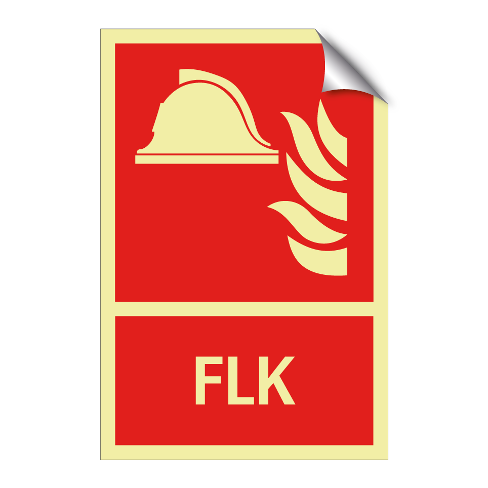 Brandschutzschild mit dem Text FLK