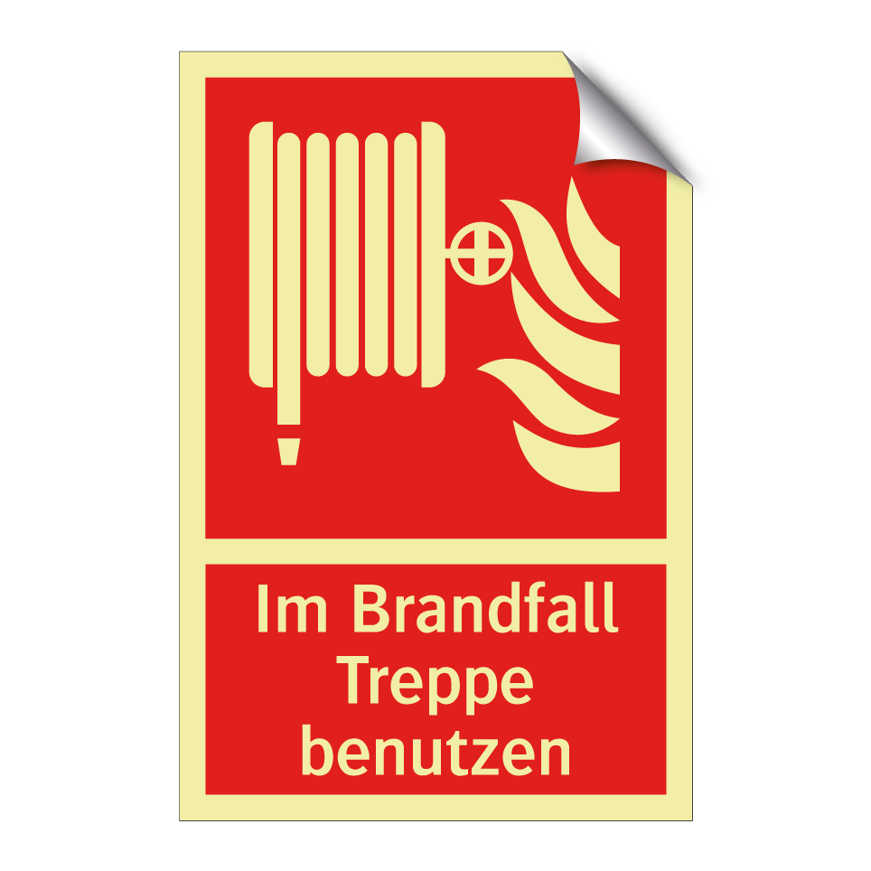 Brandschutzschild mit dem Text Im Brandfall Treppe benutzen
