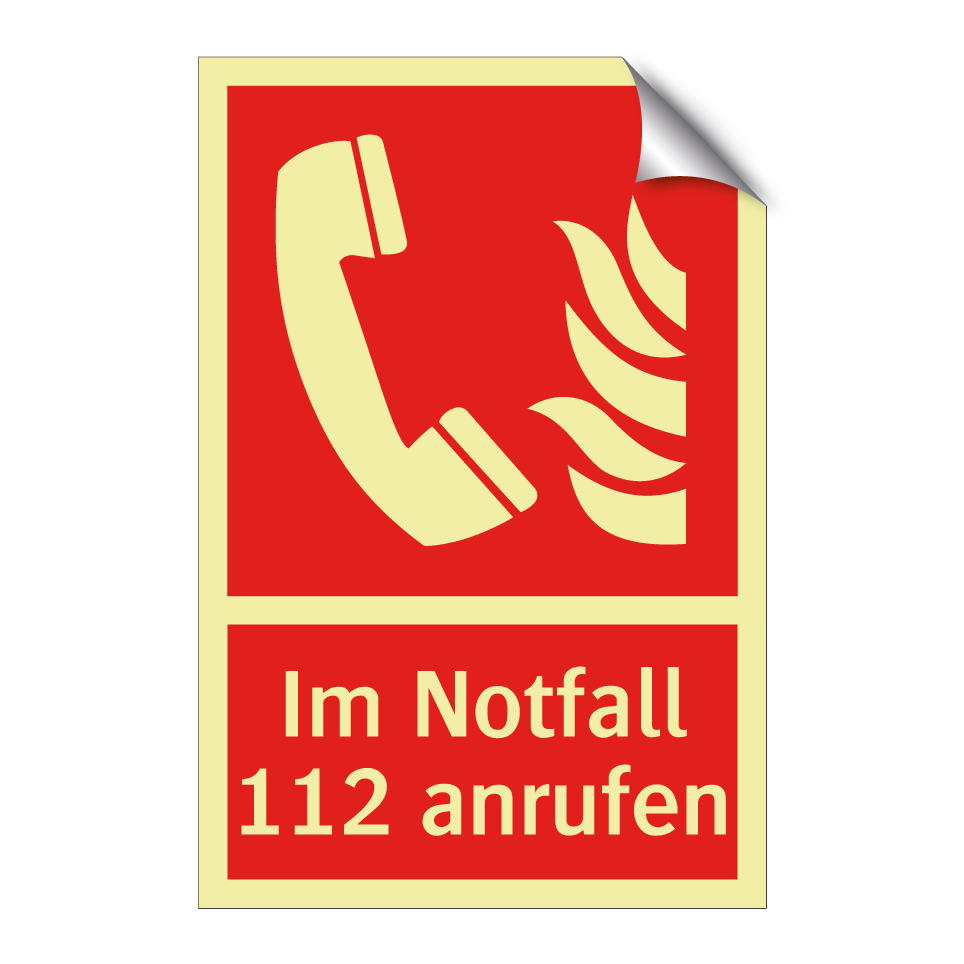 Brandschutzschild mit dem Text Im Notfall 112 anrufen