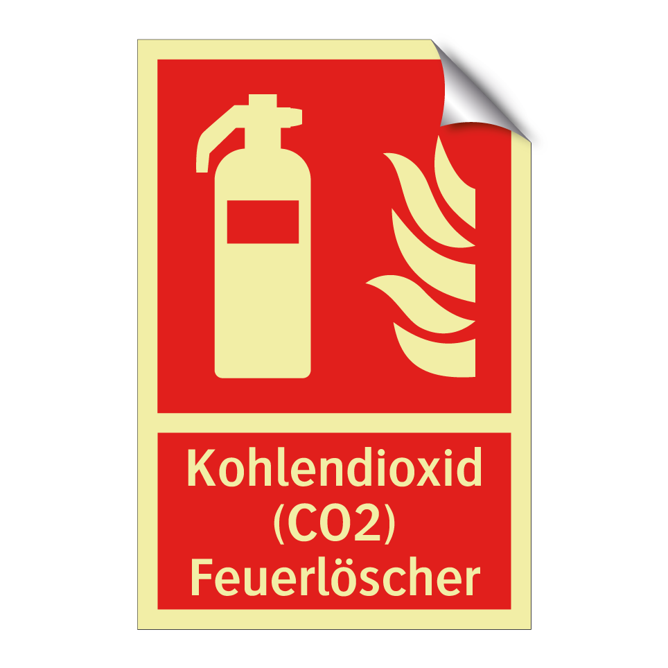 Brandschutzschild mit dem Text Kohlendioxid (CO2) Feuerlöscher