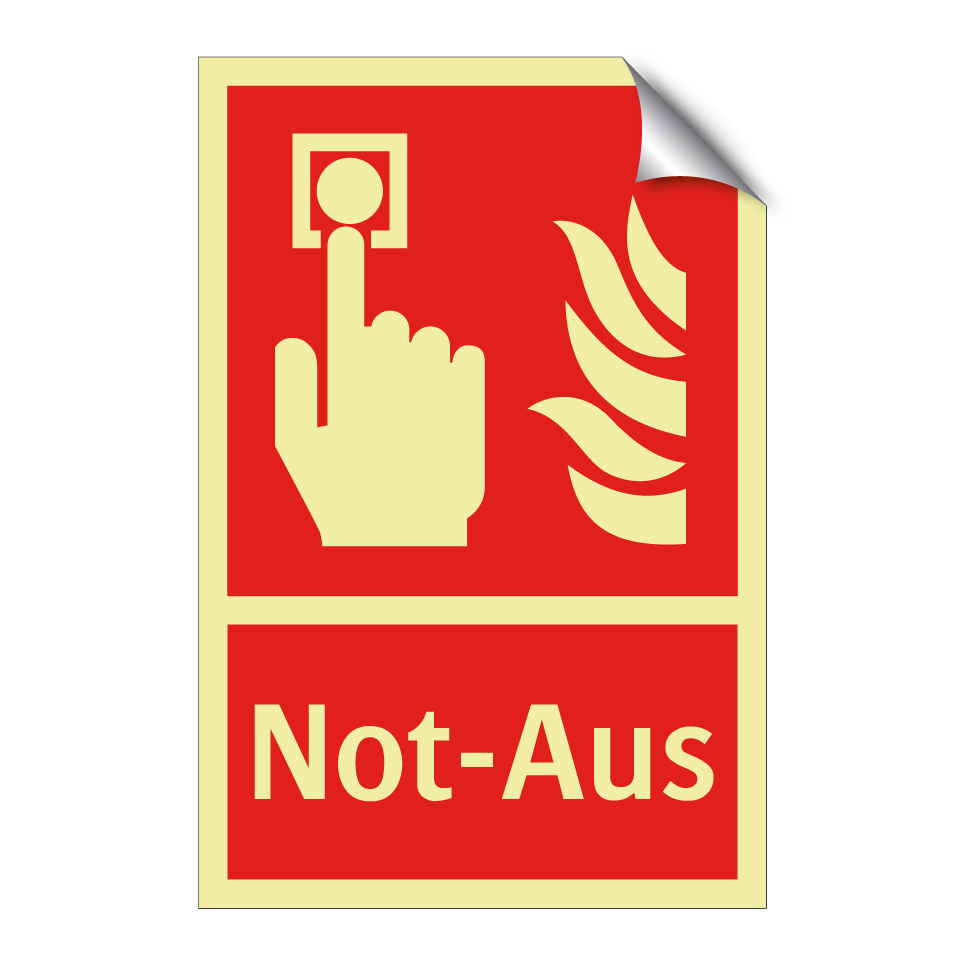 Brandschutzschild mit dem Text Not-Aus