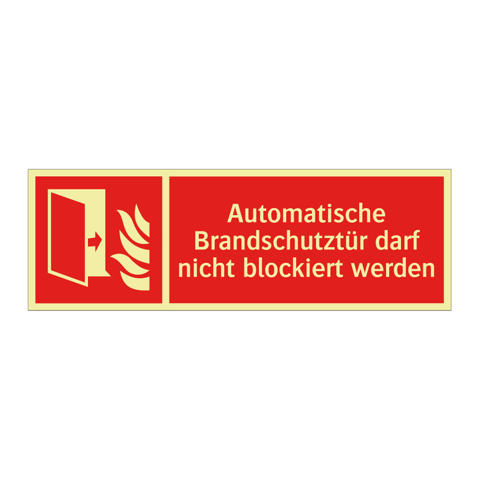 Brandschutzschild mit dem Text Automatische Brandschutztür darf nicht blockiert werden