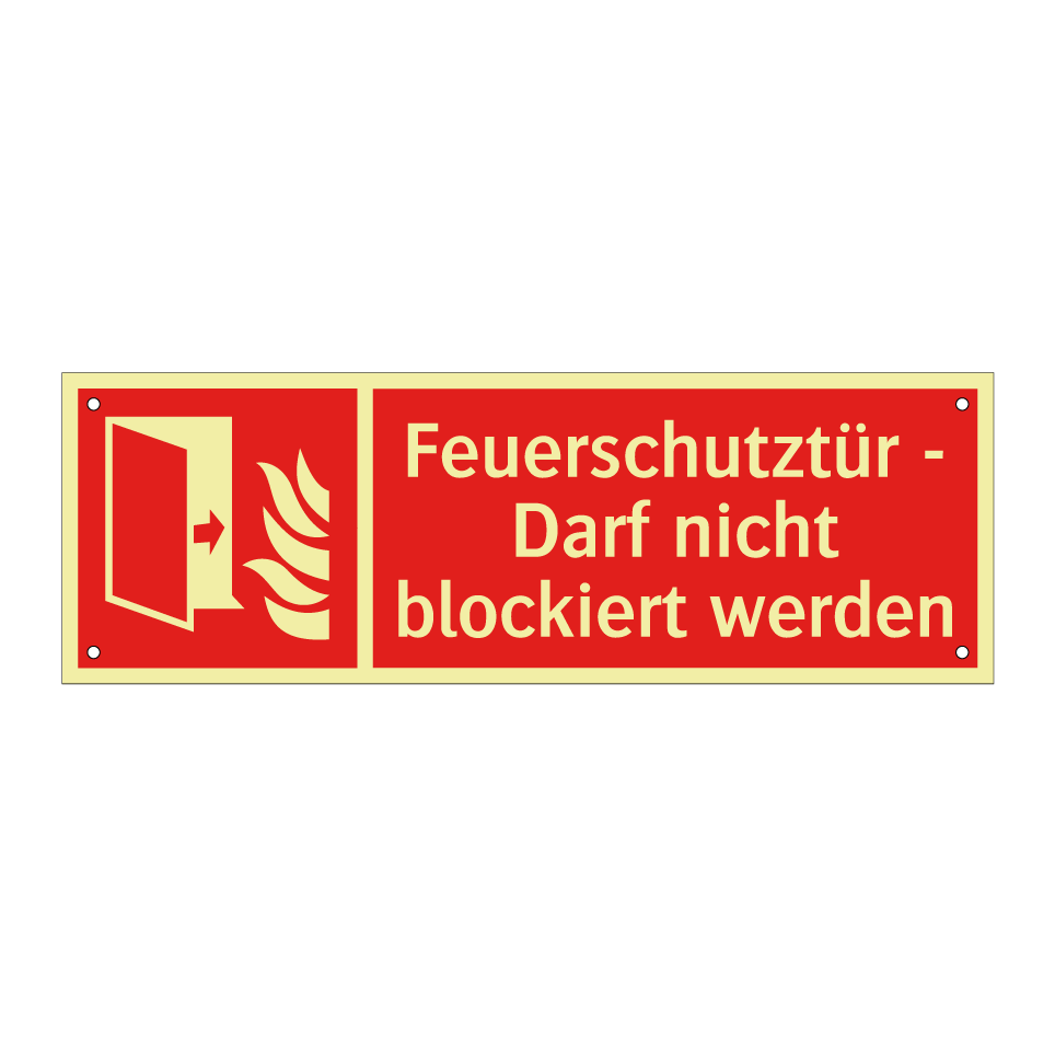 Brandschutzschild mit dem Text Feuerschutztür - Darf nicht blockiert werden
