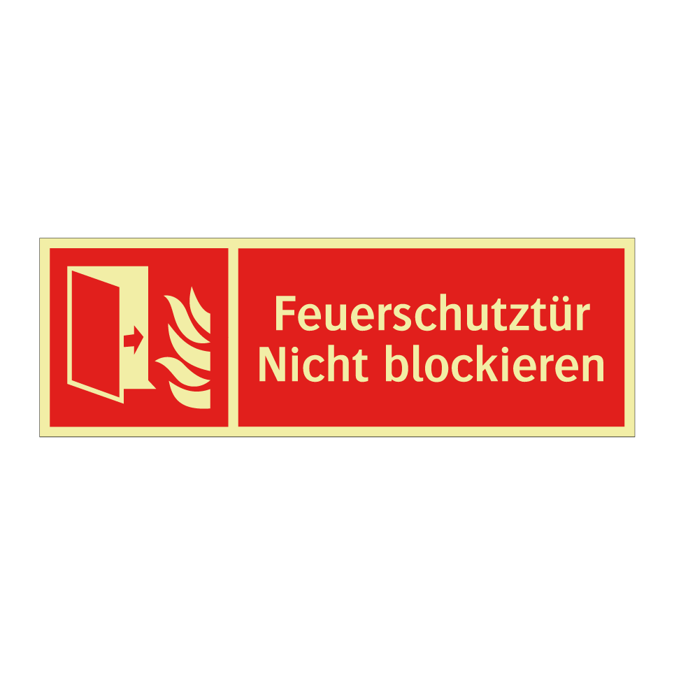 Brandschutzschild mit dem Text Feuerschutztür Nicht blockieren