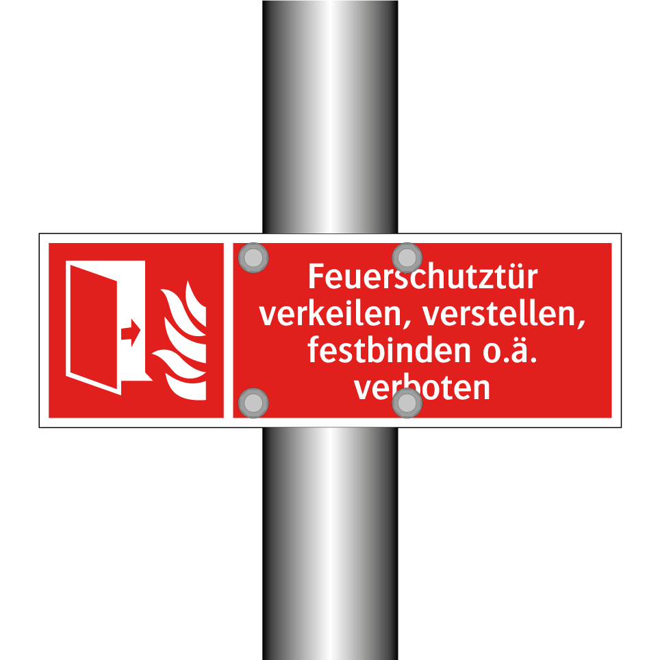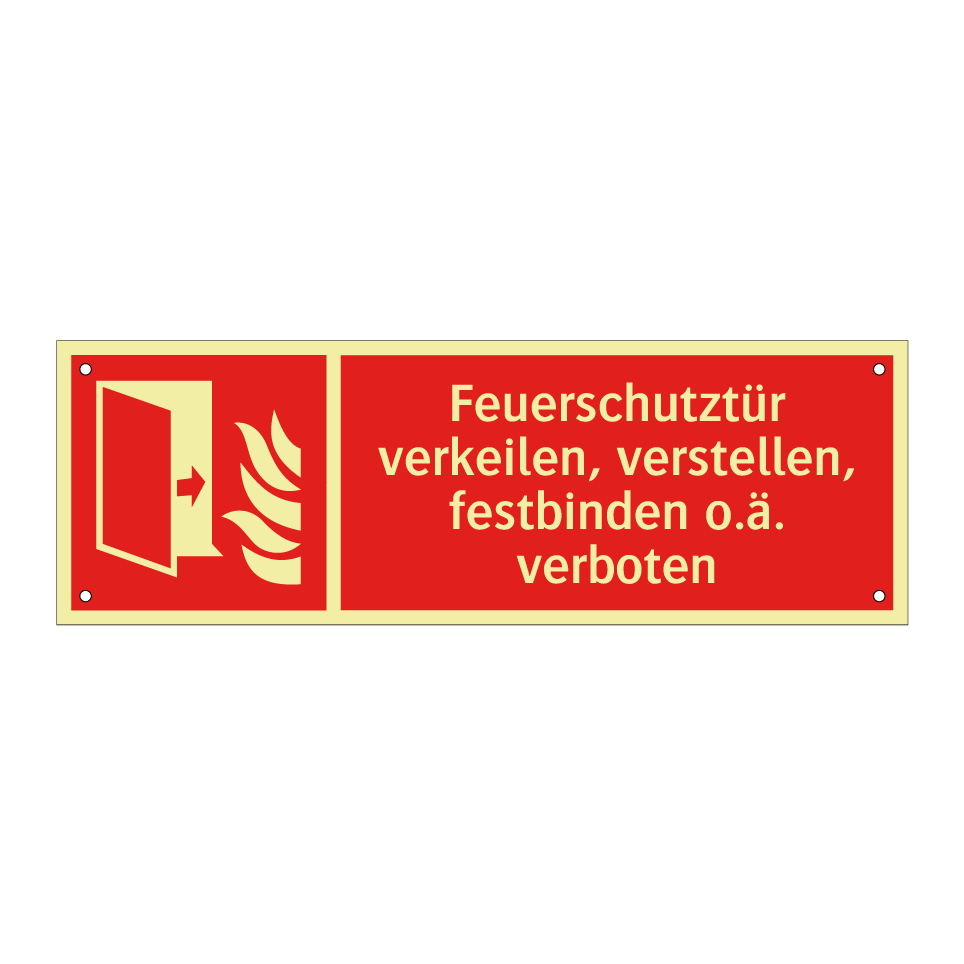 Brandschutzschild mit dem Text Feuerschutztür verkeilen, verstellen, festbinden o.ä. verboten